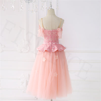 The Romantic, six layers pink tutu skirt is also decorated with pink flowers appliques.