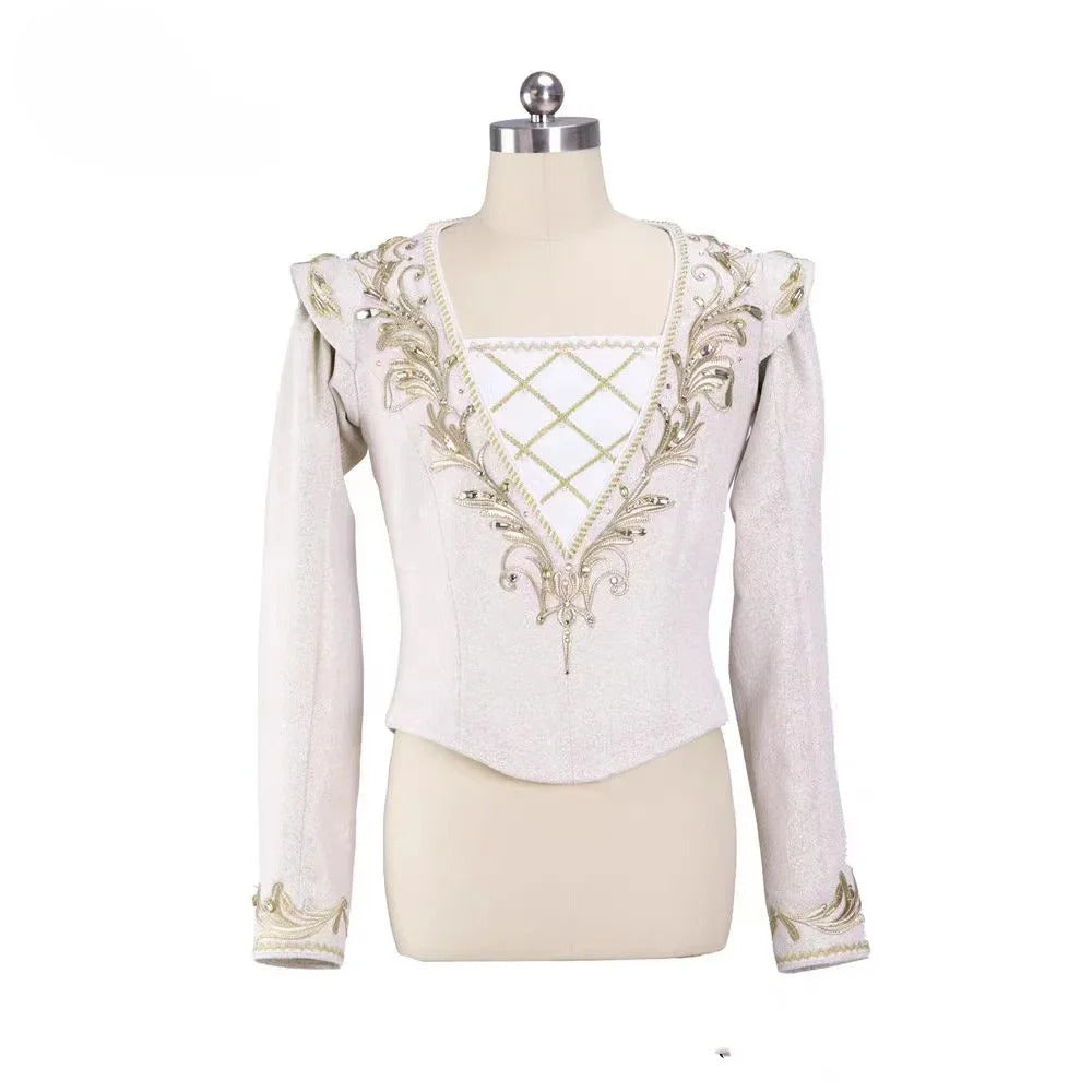 This male professional tunic has been created for the role of Prince Charming (or Prince Desire') in the ballet "The Sleeping Beauty". This tunic can also be worn for any other grand pas or pas de deux.