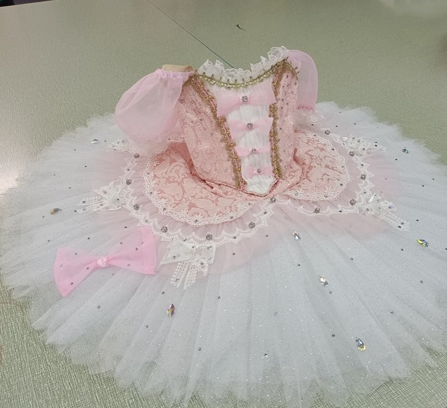 This white and pink stage costume is ideal for the wedding scene in the ballet "Coppelia", and can also be used for the wedding scene in "La Fille Mal Gardee", or for "The Fairy Doll".