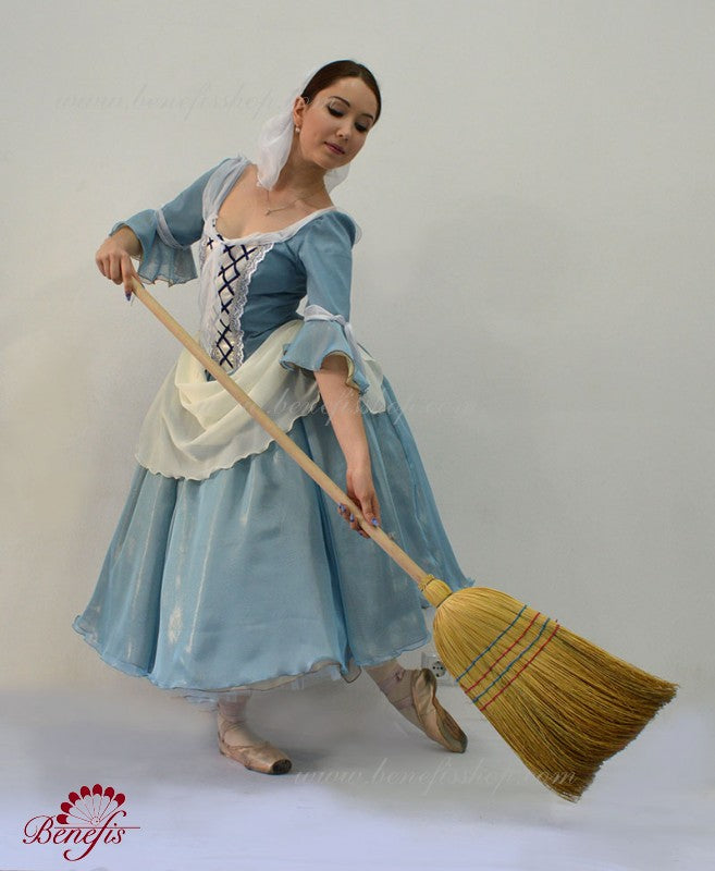 Aschenputtels Lumpenkostüm aus Akt I. Kleid, Schürze und Schal. Mieder mit Ärmeln. Aus halbelastischem Stoff, Chiffonärmel, Schürze und Rock.