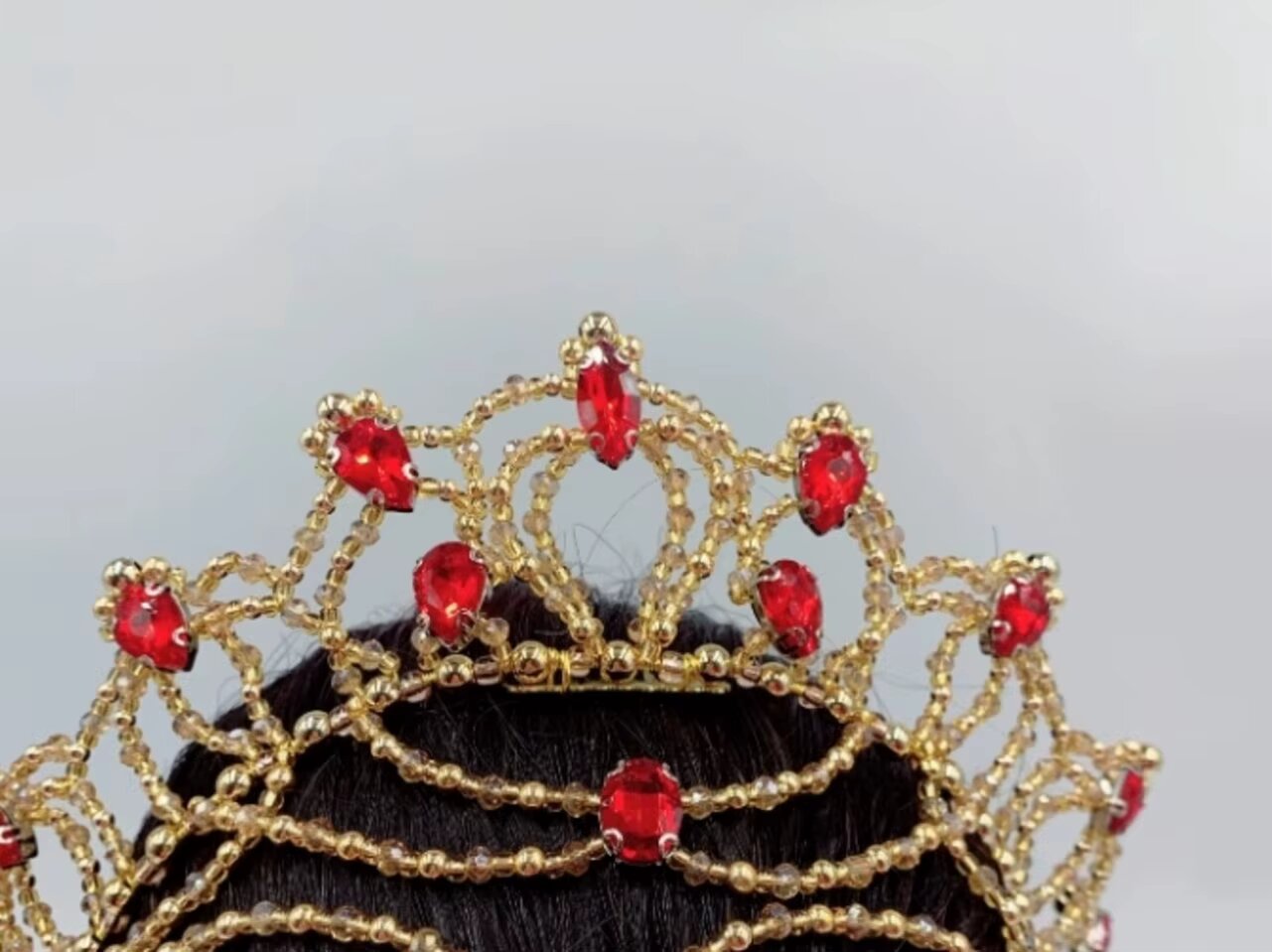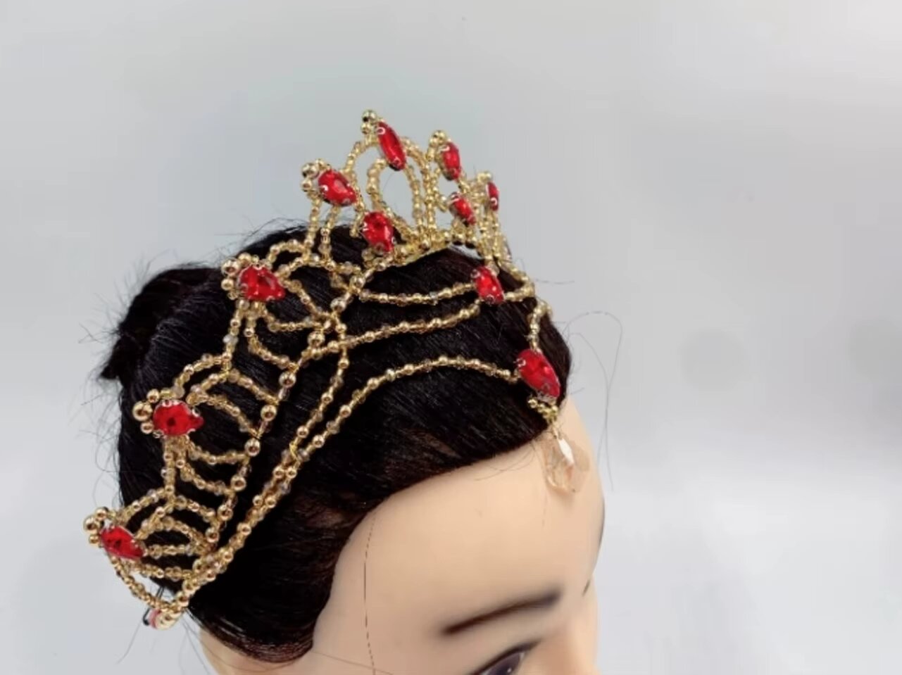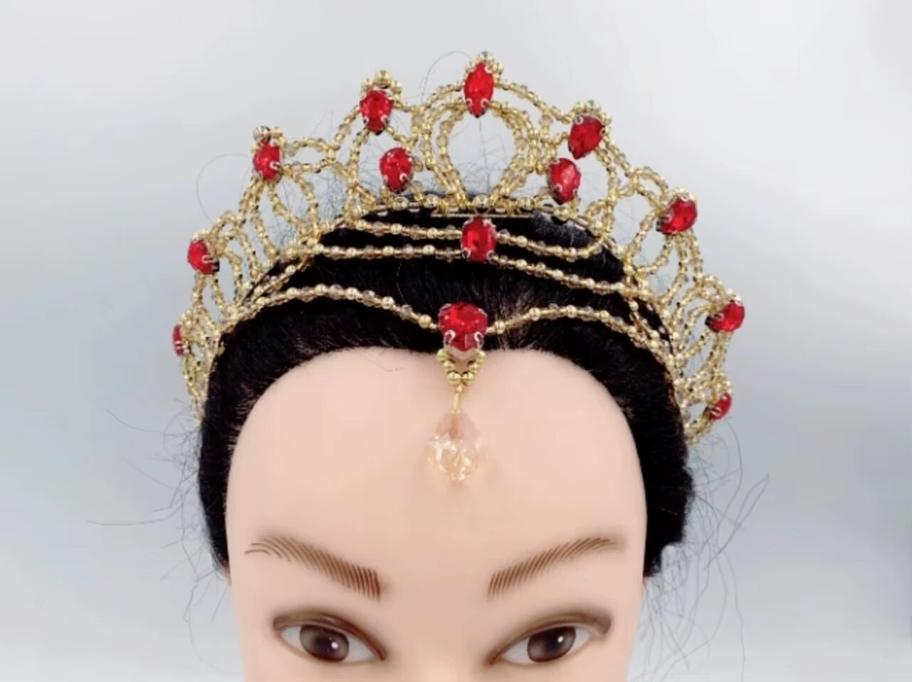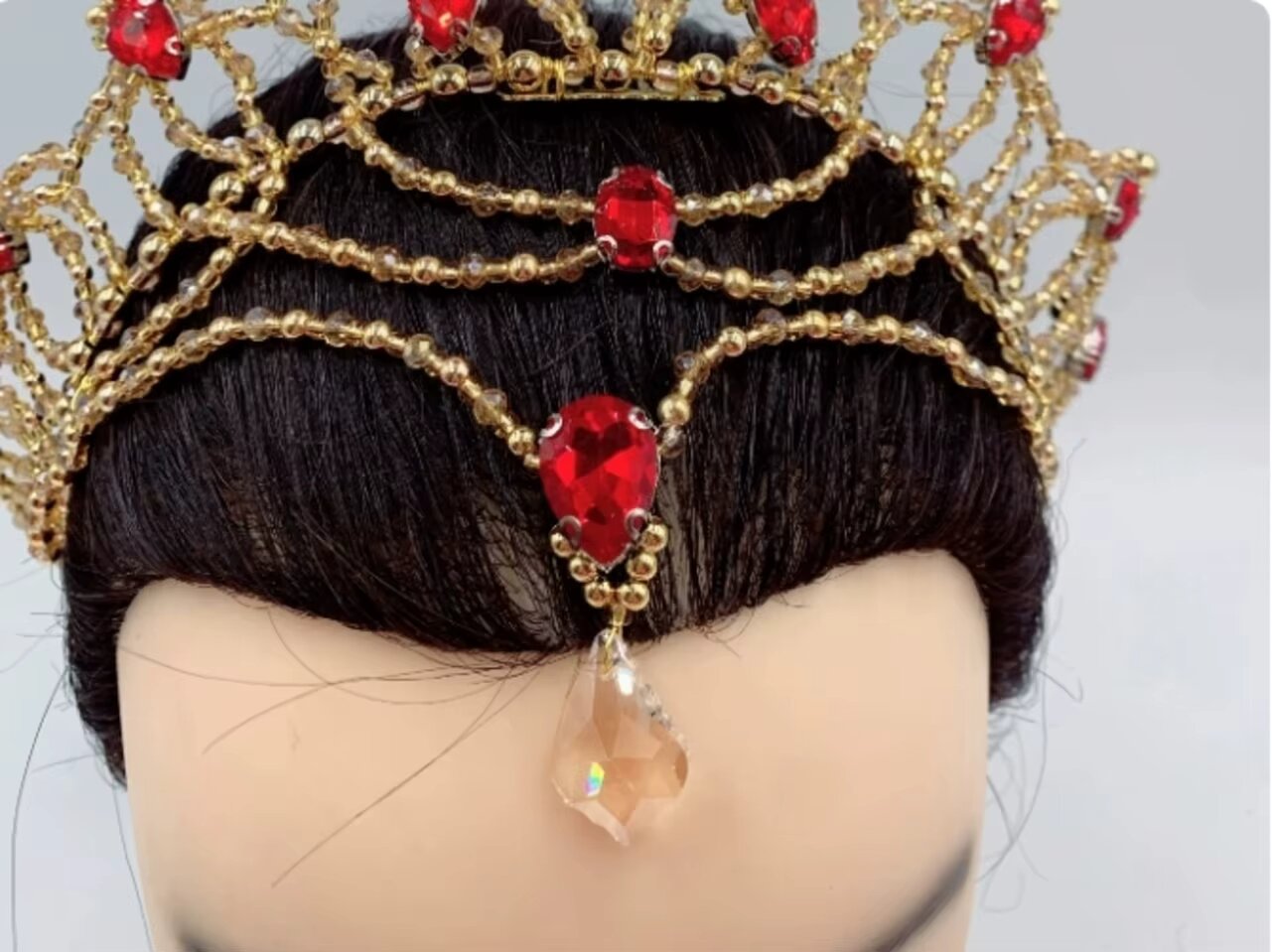 Komplett handgefertigte, sehr originelle Kreation für das Ballett La Bayadère. Der gesamte Kopfschmuck ist mit Regenbogen- und klaren Kristallen verziert.