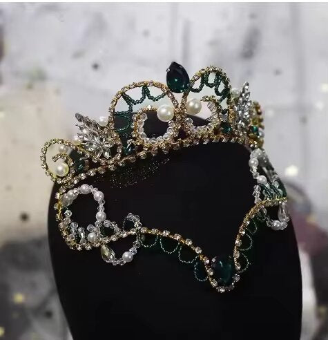 Dieses professionelle Kopfstück ist auf einem goldenen Rahmen aufgebaut und mit schwarzen Steinen und Kristallen, Diamanten und Swarovski-Steinen verziert.