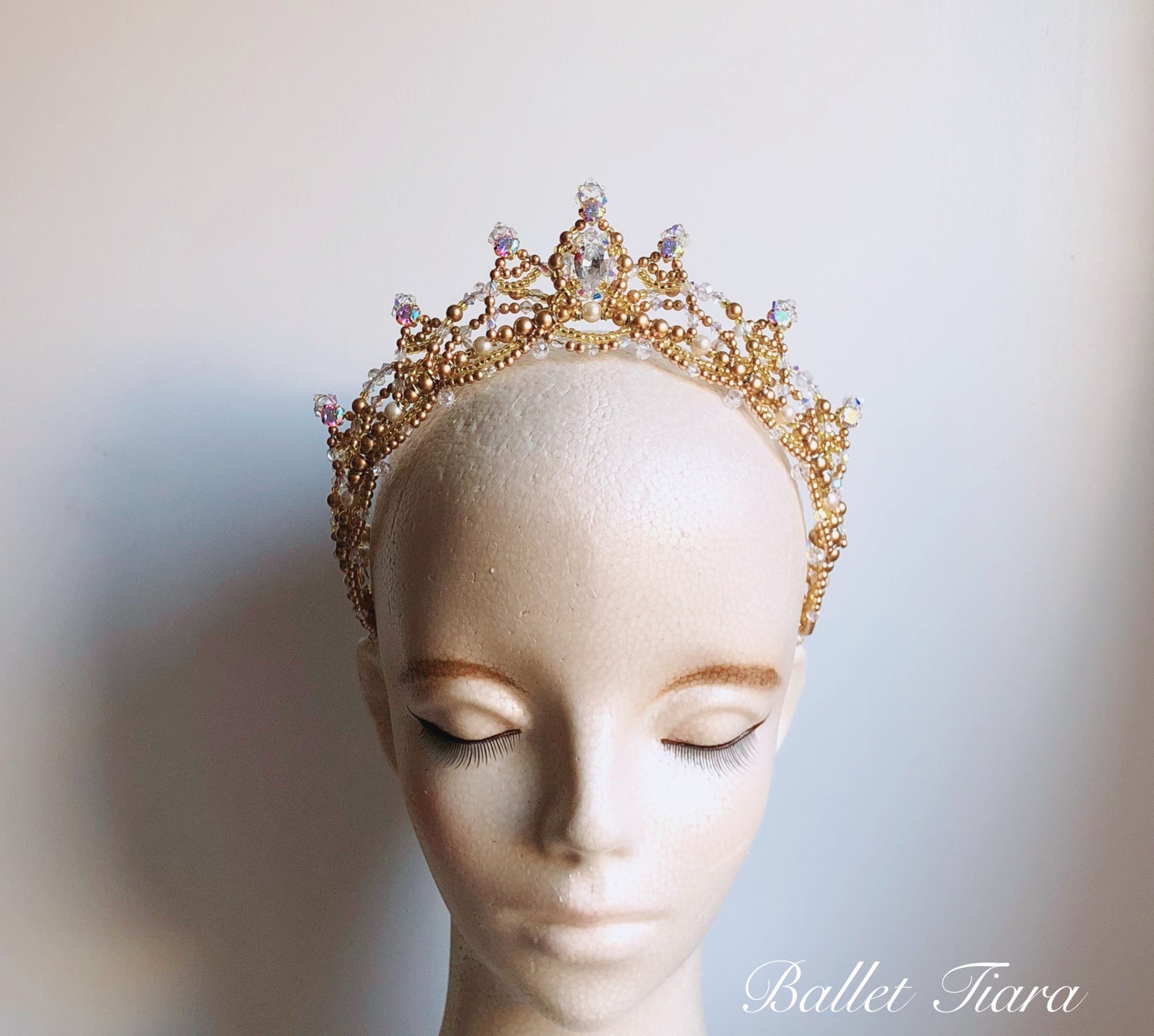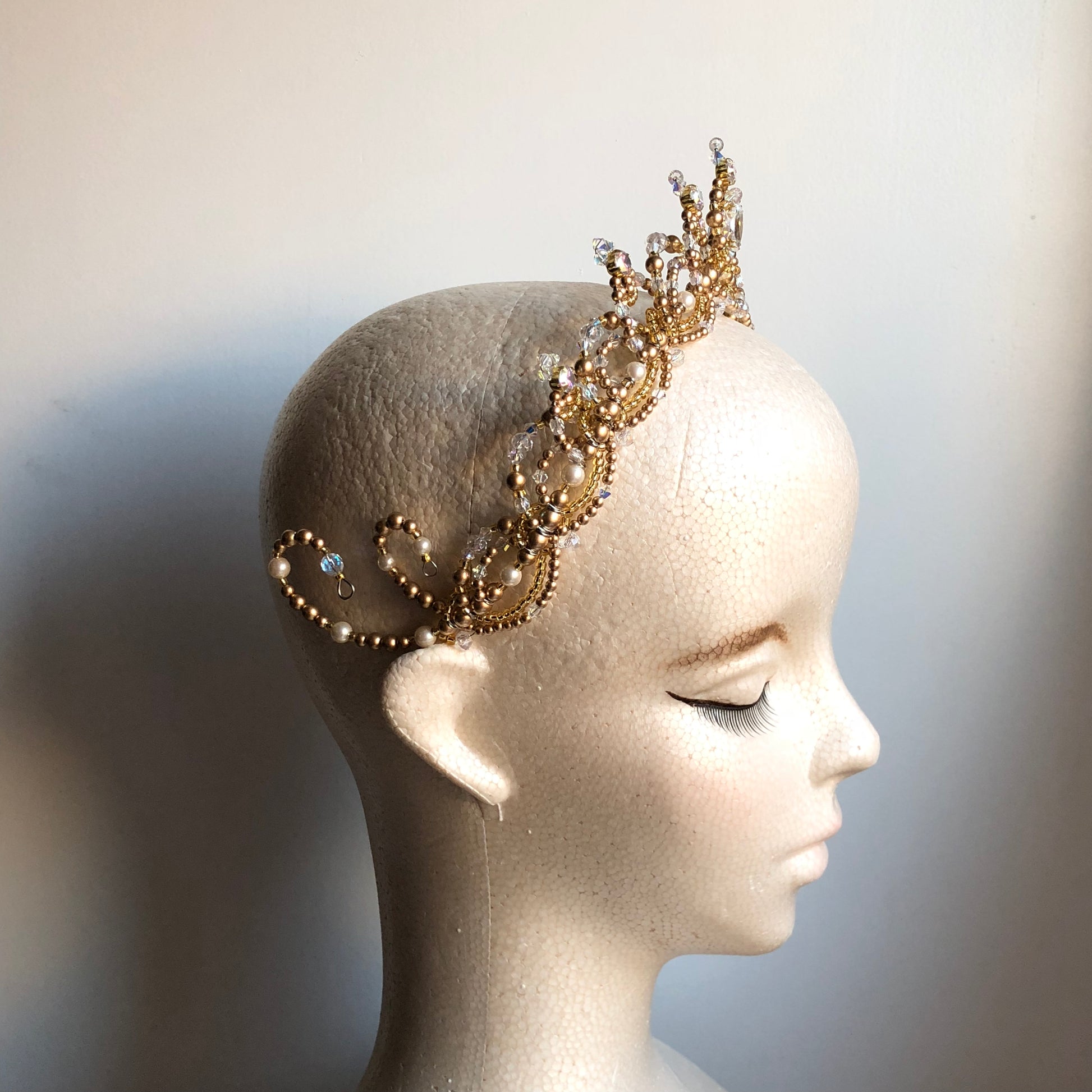 Atemberaubendes goldenes Kopfstück, geeignet für alle klassischen Rollen und insbesondere für den abschließenden Pas de Deux von Prinzessin Aurora und Prinz Desire.
