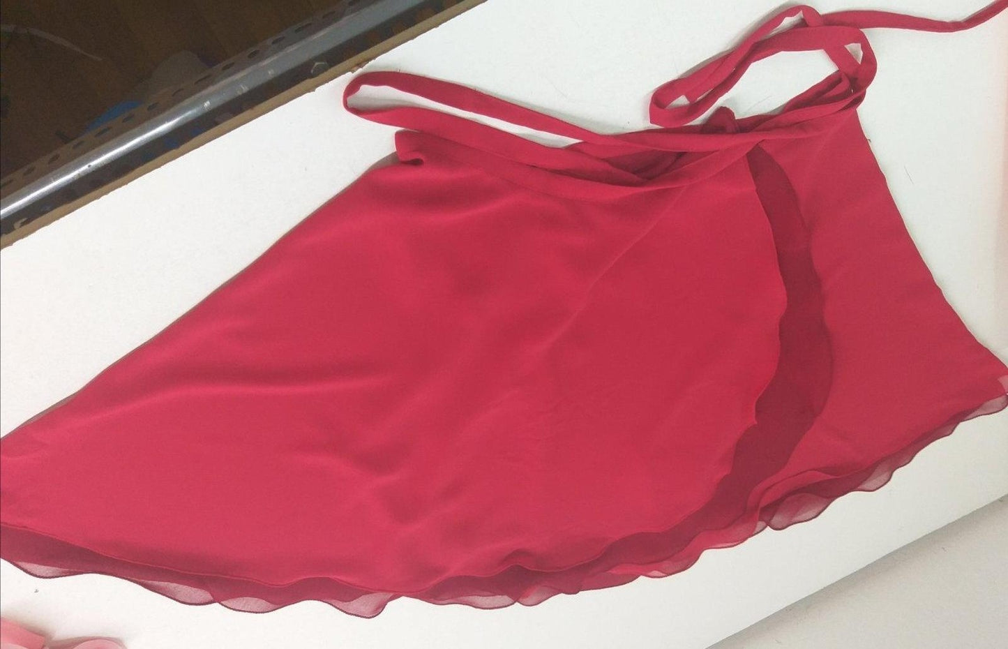 Ein sehr eleganter Chiffon-Ballettrock, der sowohl für Tänzerinnen als auch für Lehrerinnen geeignet ist. Dieser knielange Rock ist in drei verschiedenen Farben erhältlich: Lila (mit zwei Schattierungen von Dunkel- und Hellviolett), Rot und Rosa.