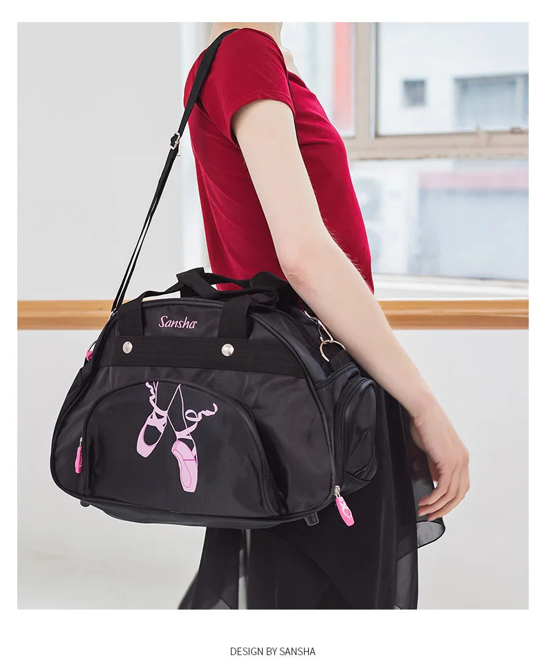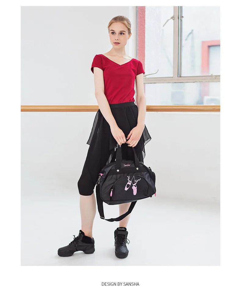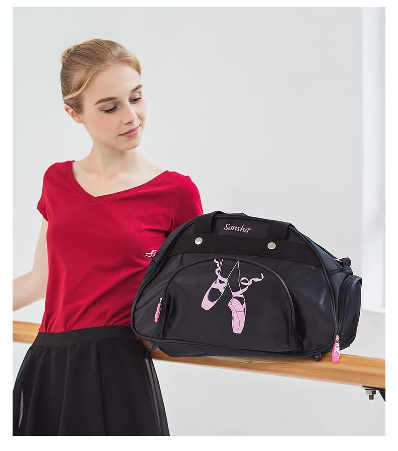 Praktische Balletttasche von „Sansha“. Verstellbarer Riemen, Seitentaschen, Ballerinaschuh-Reißverschluss. Ein Muss für jede Ballerina.