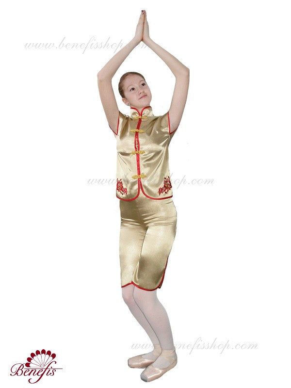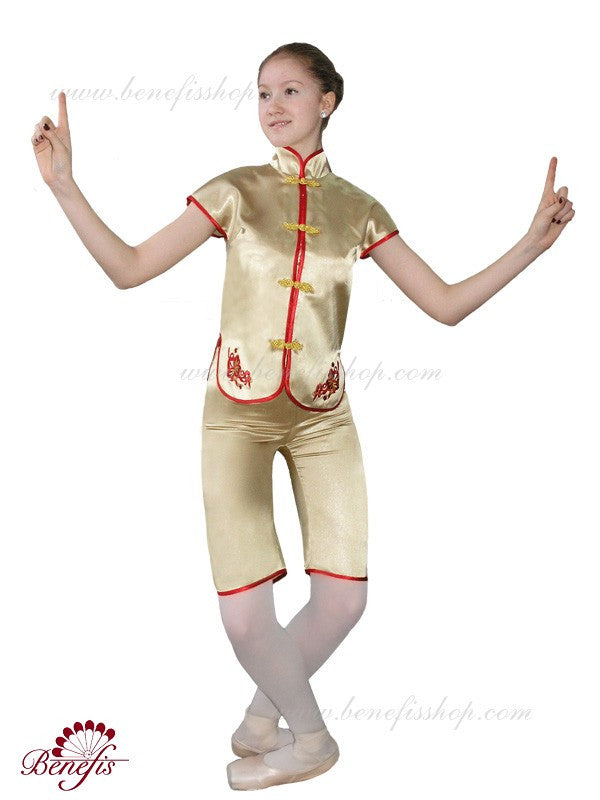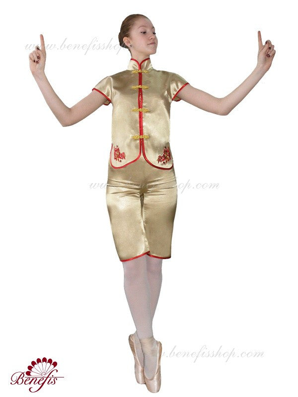 Das Kostüm ist aus Satin gefertigt und mit Satinschrägband eingefasst.