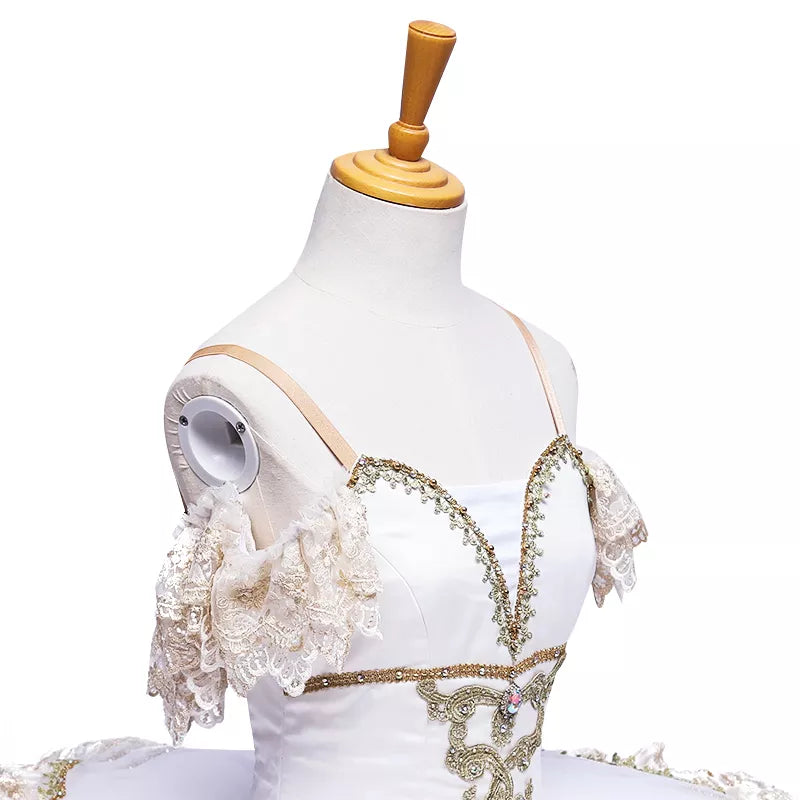 Eine atemberaubende Kreation für die Rolle von Clara/Macha im zweiten Akt des Pas de Deux. Dieses Bühnenkostüm kann auch für die Rolle von Prinzessin Aurora in Dornröschen getragen werden.