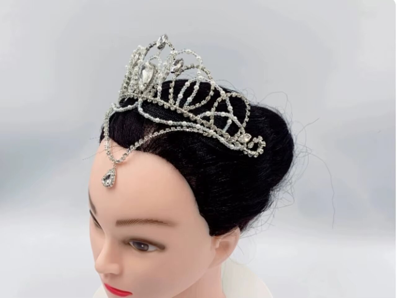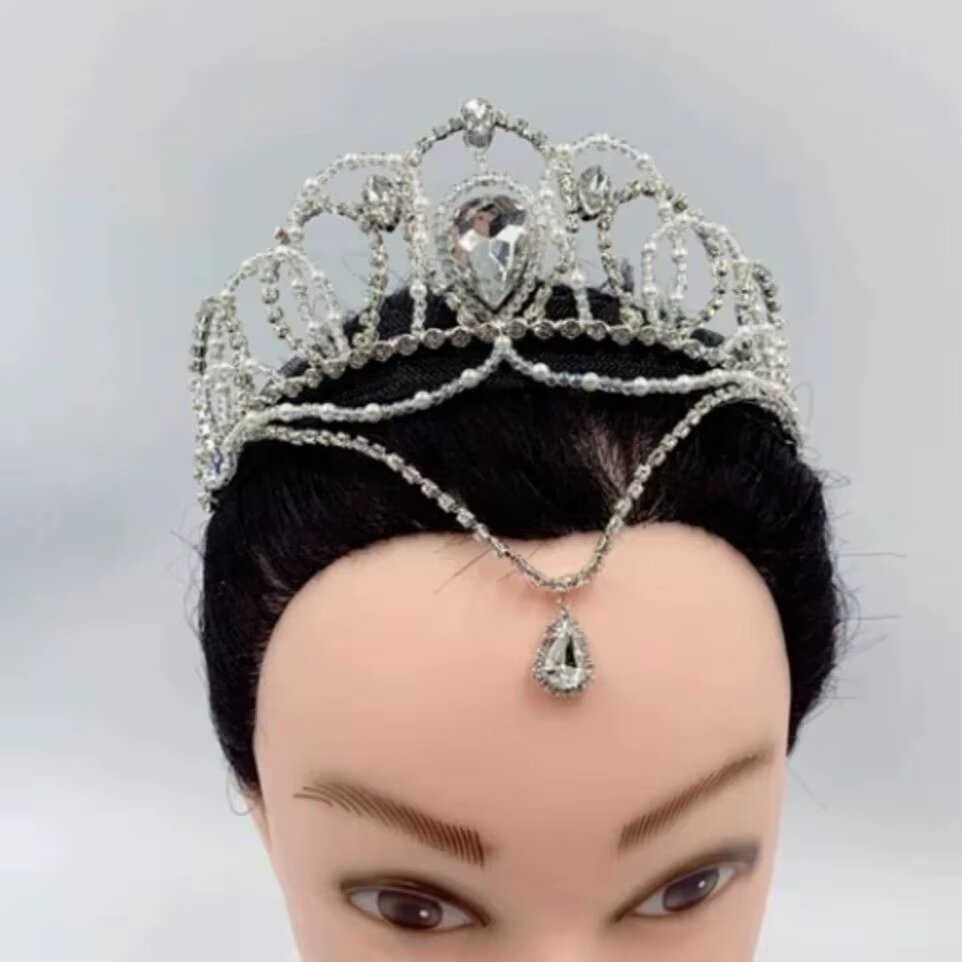 Komplett handgefertigt auf einem goldenen Rahmen, mit weißen Swarovski-Kristallen und Steinen. Geeignet für jedes klassische Ballett.