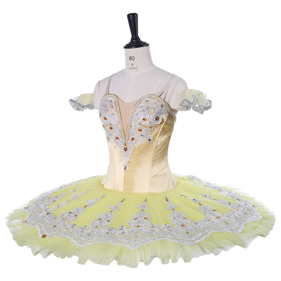 Wunderschönes gelbes Tutu, das für die Variation der „Fee der Singvögel“ im Ballett „Dornröschen“ entworfen wurde. Es kann auch für die „Brautjungfern-Variation“ in Don Quijote verwendet werden.
