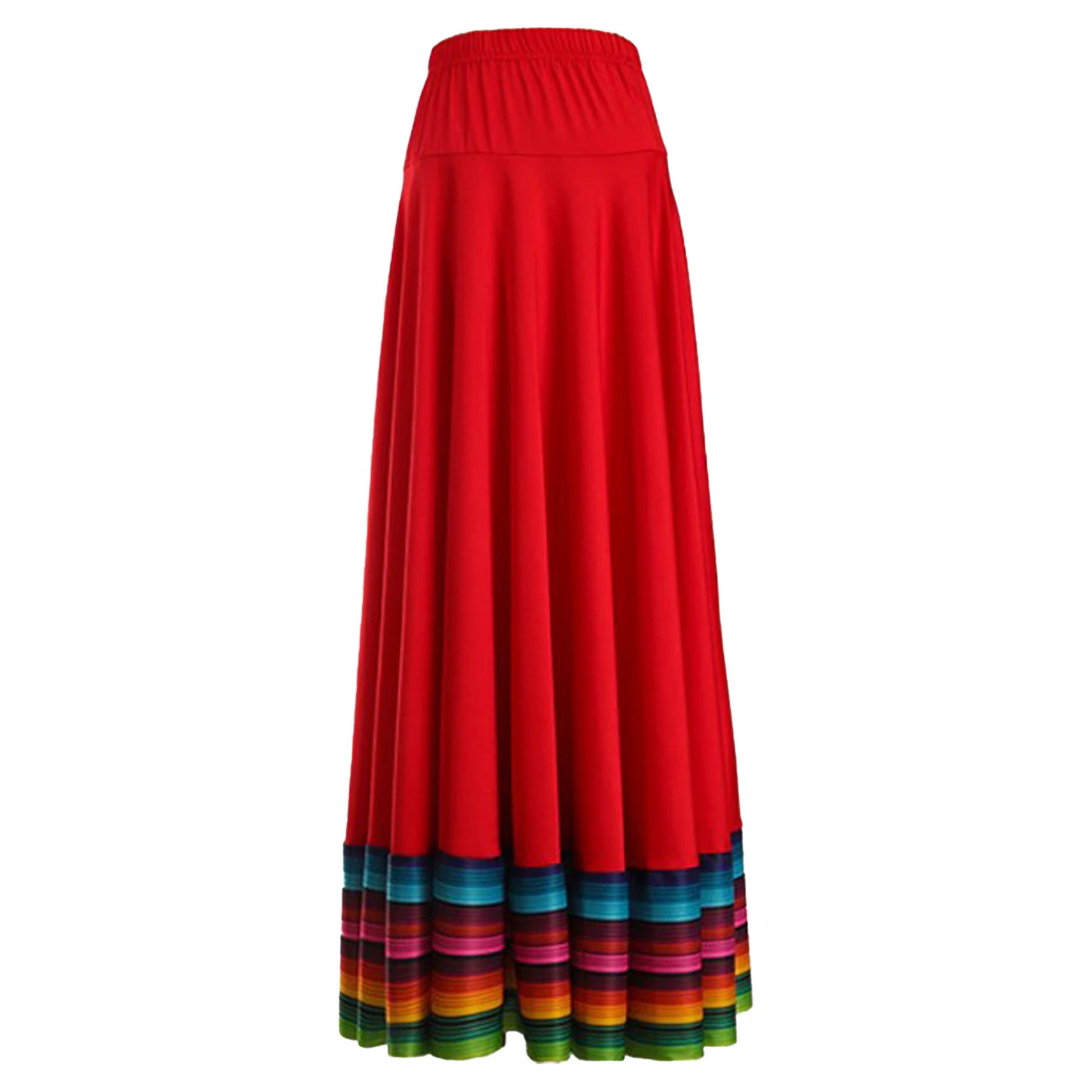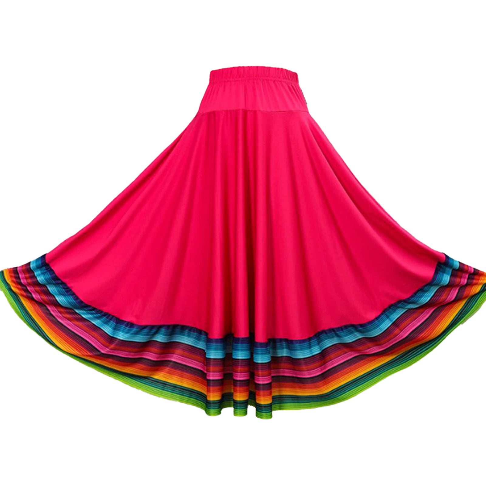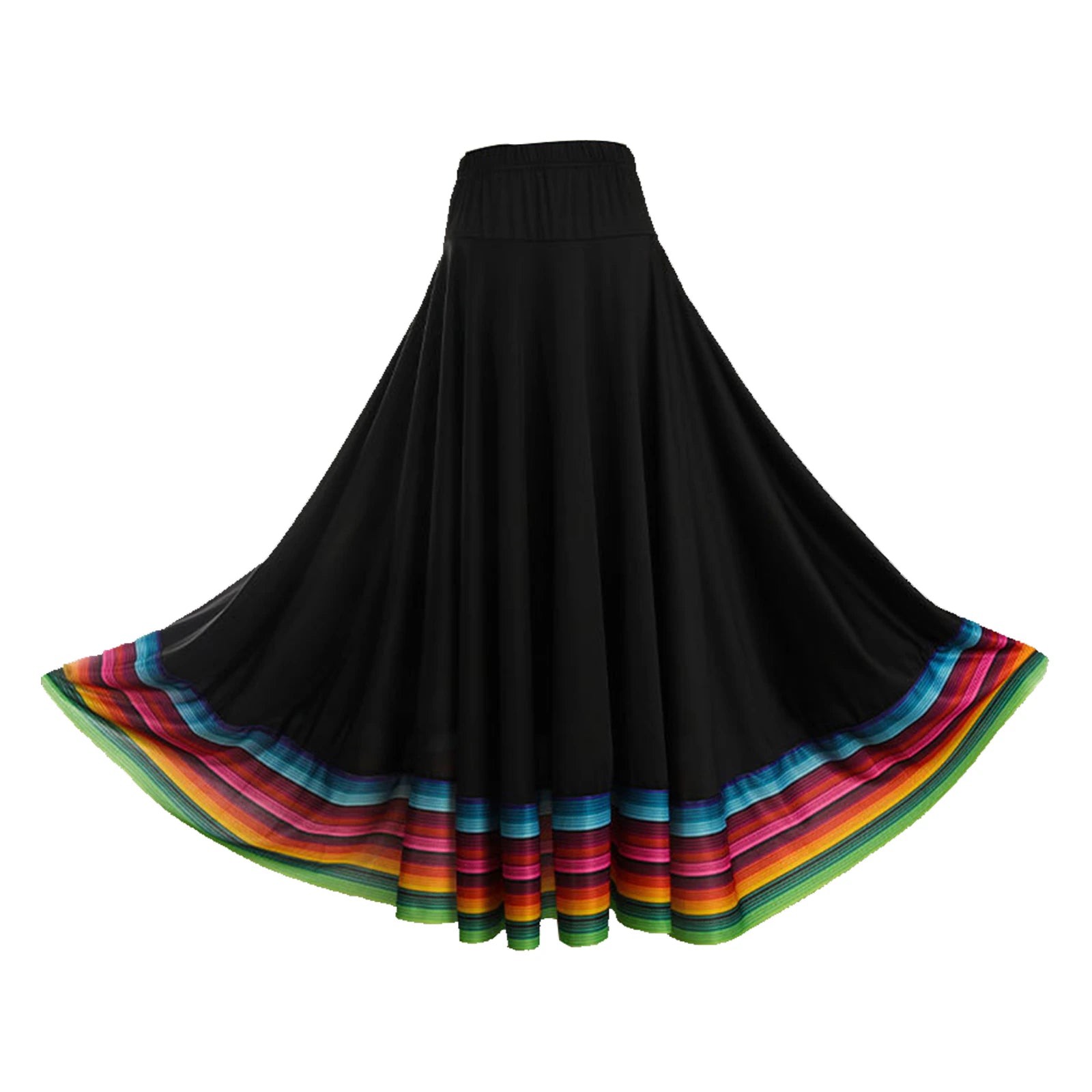 Tanzrock für Damen mit hoher Taille, dem breiten Saumdesign und den bunten Streifen an der Unterseite ist er perfekt zum Wirbeln und Tanzen.