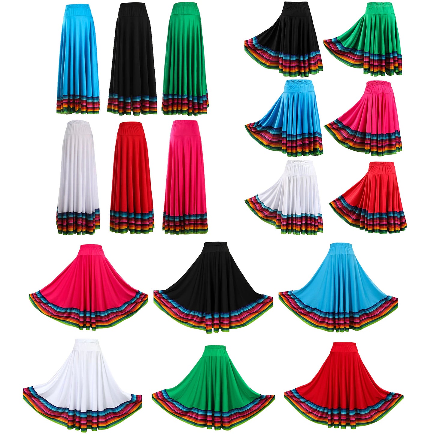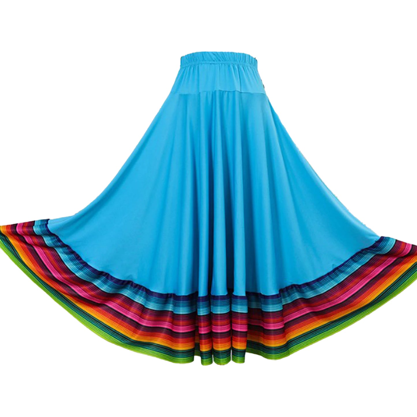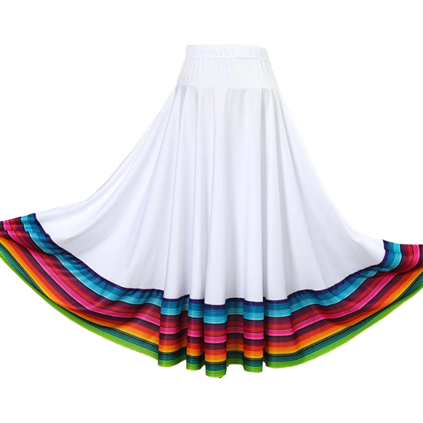 Tanzrock für Damen mit hoher Taille, dem breiten Saumdesign und den bunten Streifen an der Unterseite ist er perfekt zum Wirbeln und Tanzen.