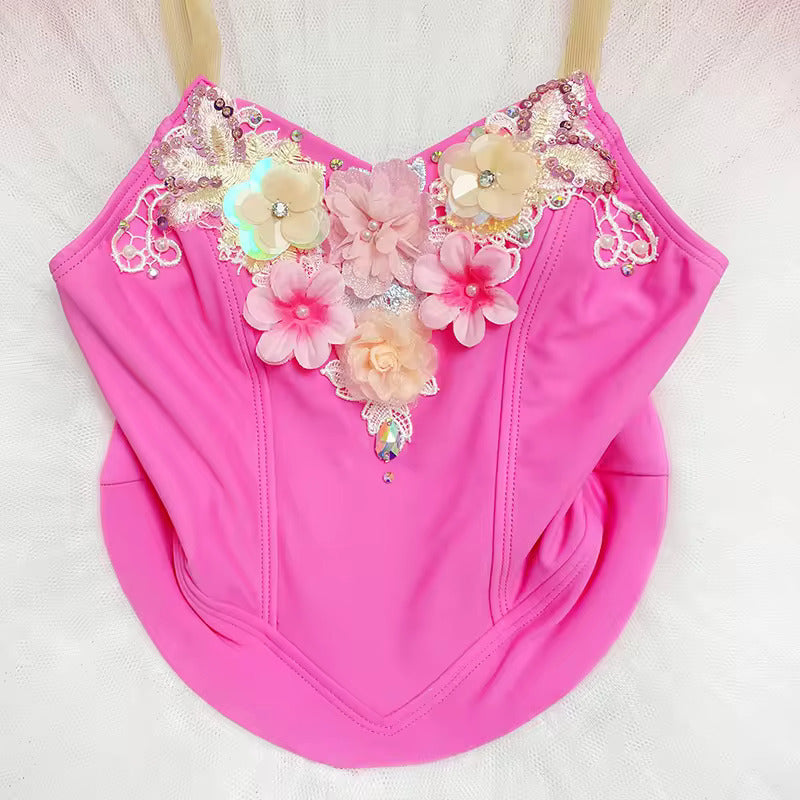 „Hibiscus“ ist ein wunderbares professionelles Kinderkostüm. Es ist in einem wundervollen Pinkton gehalten und hat einen Tutu-Rock in Ombre-Färbung. Es besteht aus einem Lycra-Überziehmieder mit hautfarbenen Trägern und üppigen Blumenapplikationen, Spitze und Glitzer.