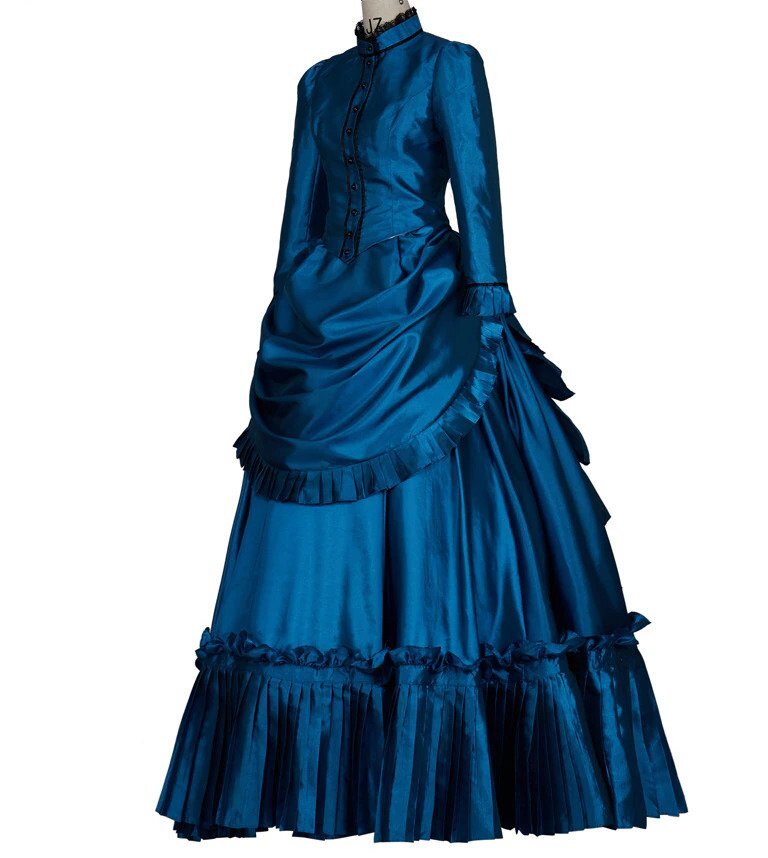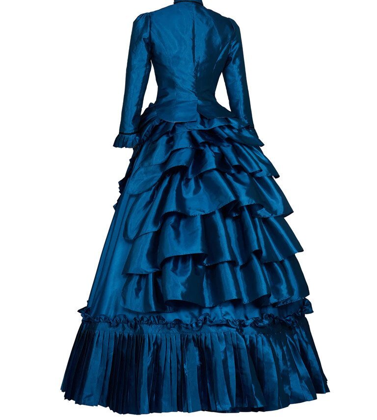 Dieses viktorianische, blaue Taftkleid ist perfekt für die Rolle von Miss Stahlbaum (Claras Mutter) im Ballett „Der Nussknacker“.