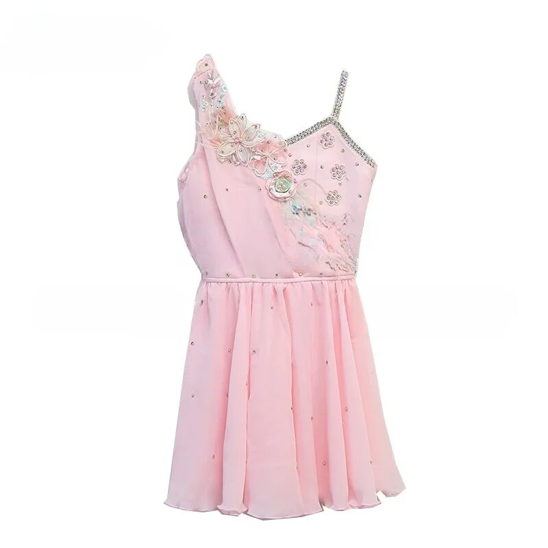 Professionelles kurzes Ballettkleid aus rosa Chiffon für Rollen wie die Rosetten oder der Tautropfen im Nussknacker oder der Amor in Don Quijote.