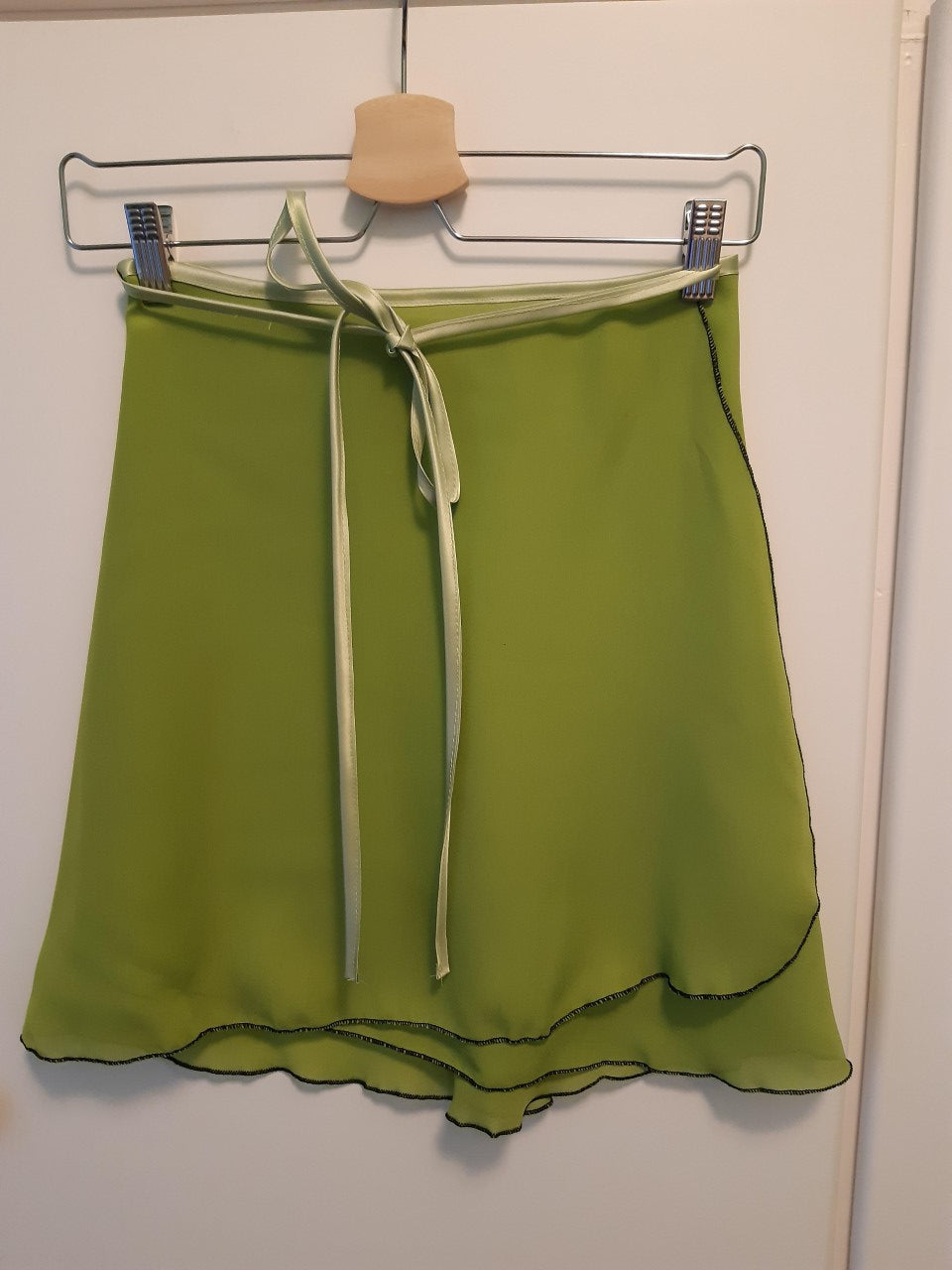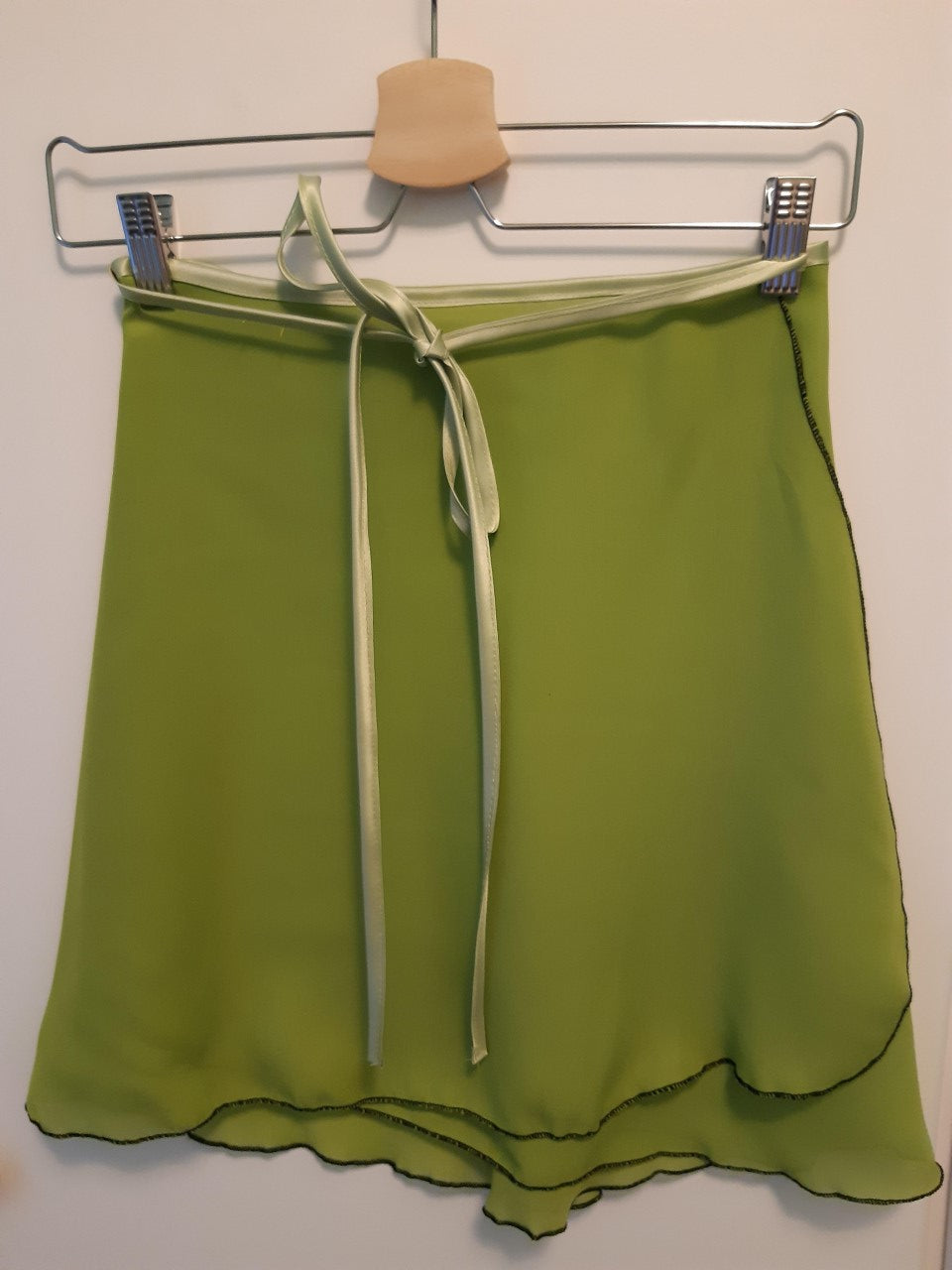 Ein hübscher Wickelrock aus Chiffon in Pistaziengrün. Hellgrünes Satinband in der Taille.