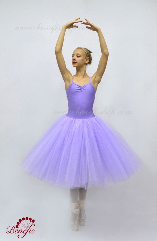 Das Tutu ist auf der Grundlage eines Leibchenbodys und eines daran befestigten romantischen Tutu gefertigt. Der Rock besteht aus Tüllschichten unterschiedlicher Länge. Der Leibchenbody ist aus Supplex gefertigt. Der Body kann auf Wunsch des Kunden gegen Aufpreis auch aus Samt gefertigt werden.