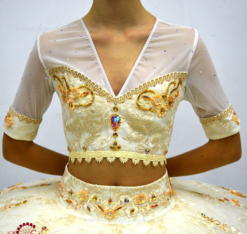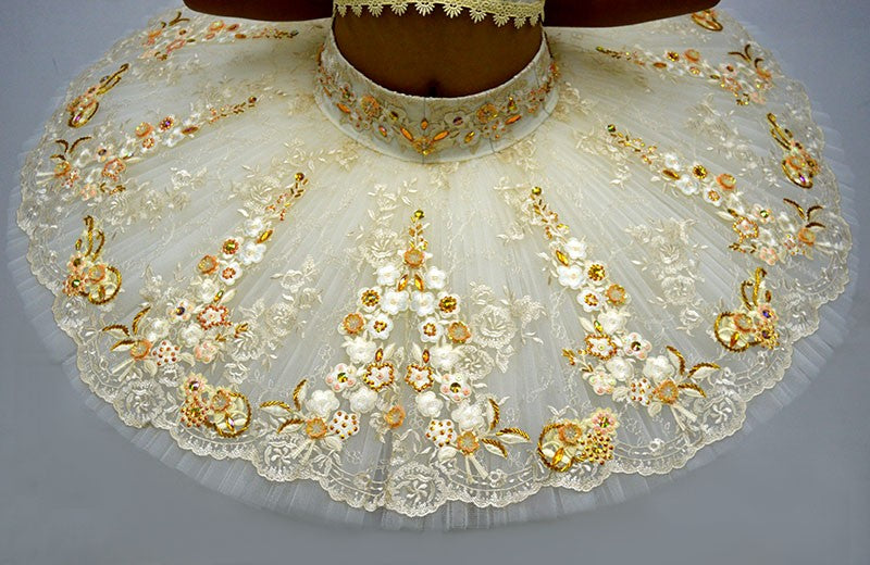 Der professionelle zehnlagige Tutu-Rock ist vollständig mit Gold verziert.