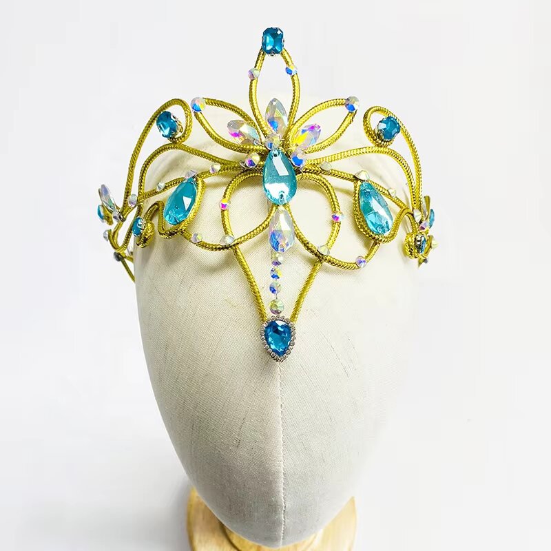 This stunning headpiece is a little masterpiece! Entirely hand made on a gold frame, it covers the whole head like an Egyptian queen's jewel! It is suitable for many oriental roles, especially for the role of Nikiya or Gamzatti in "La Bayadere", for the ballet "Le Corsaire' or the "Arabian Dance" in Nutcracker.