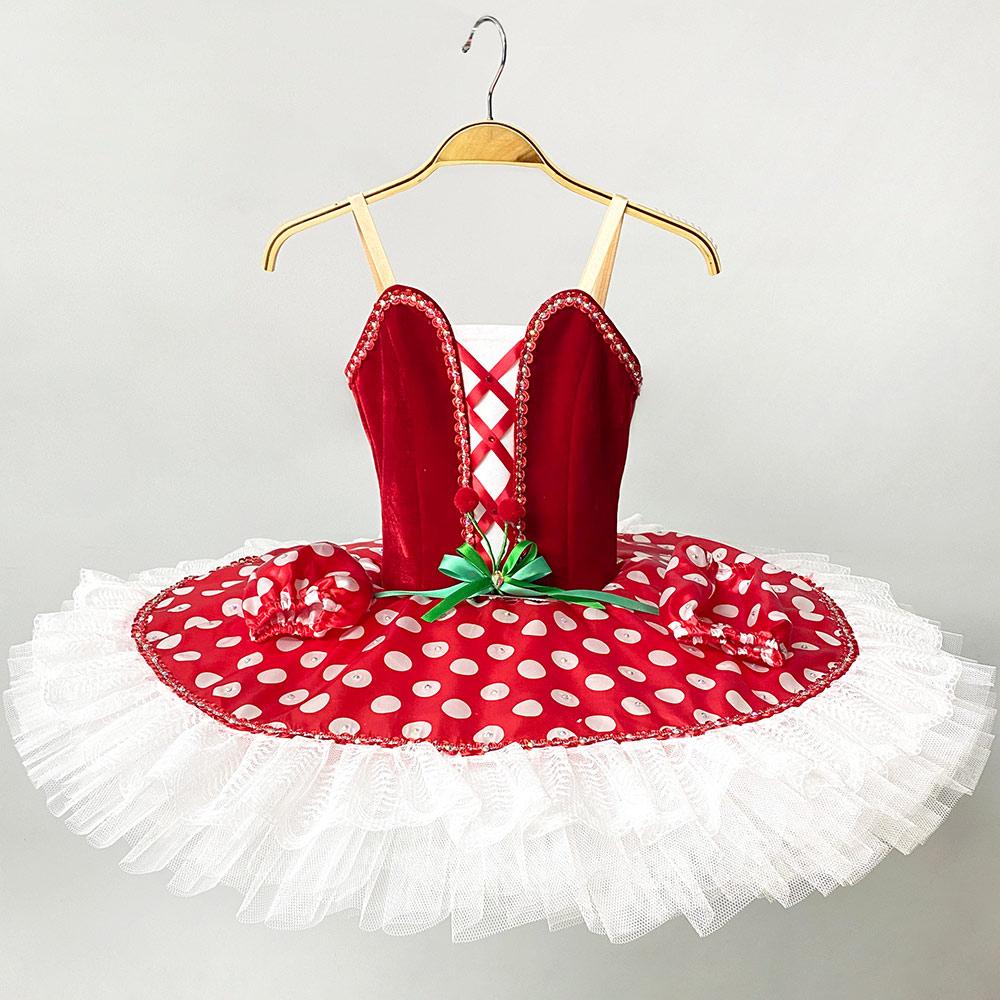 The white, 10 layers, professional tutu skirt is white, with a red and white, polka dots tutu skirt.