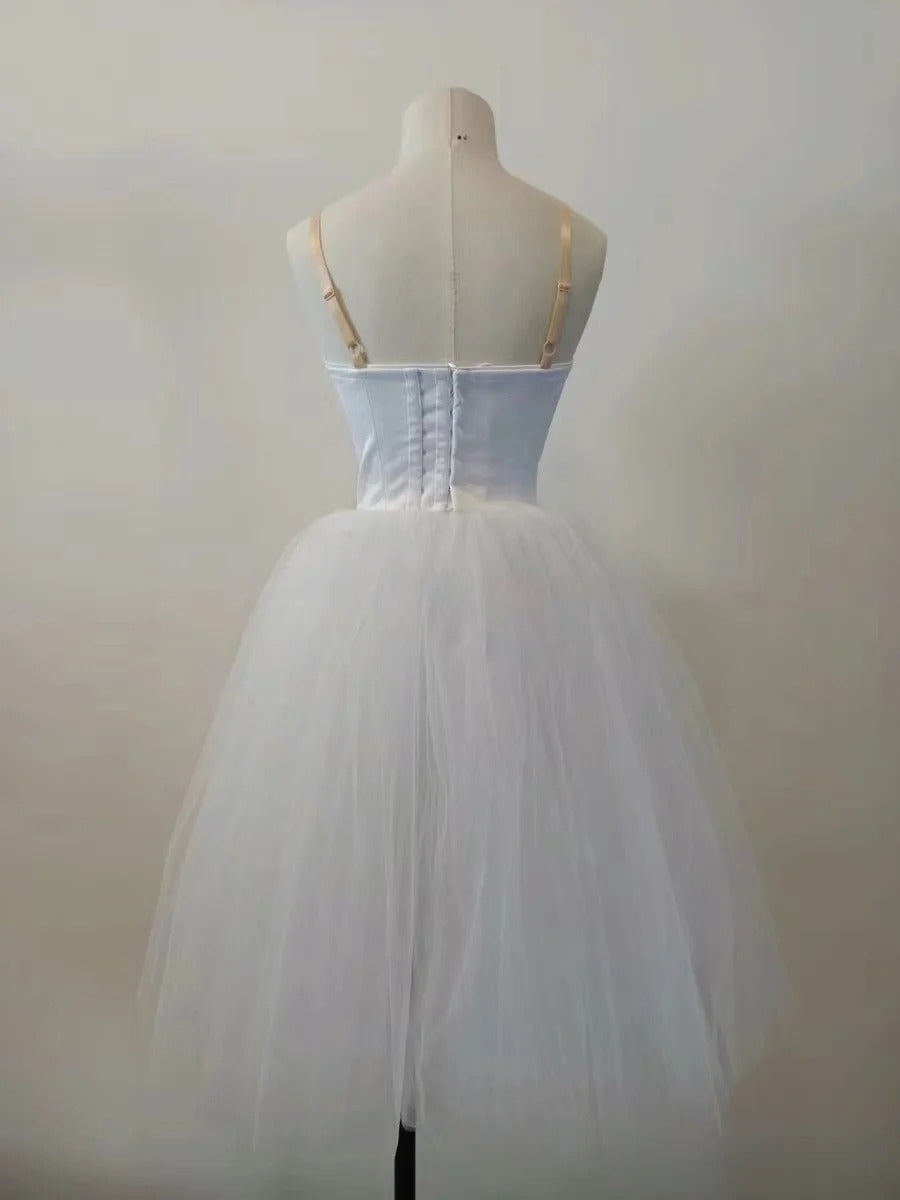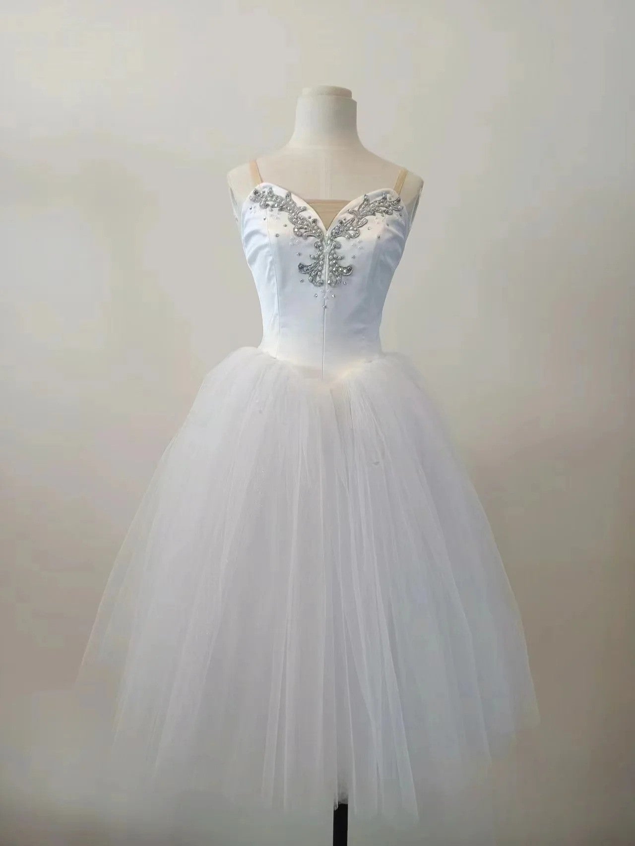 This Romantic, white professional tutu, has been created for any Romantic ballet like Giselle, La Sylphide, Les Sylphides, and Snow Flakes.