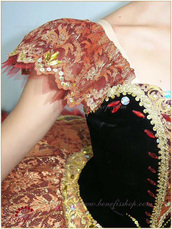 Two colors of the net are used in carrying out the skirt; it makes the costume look very solemnly.
