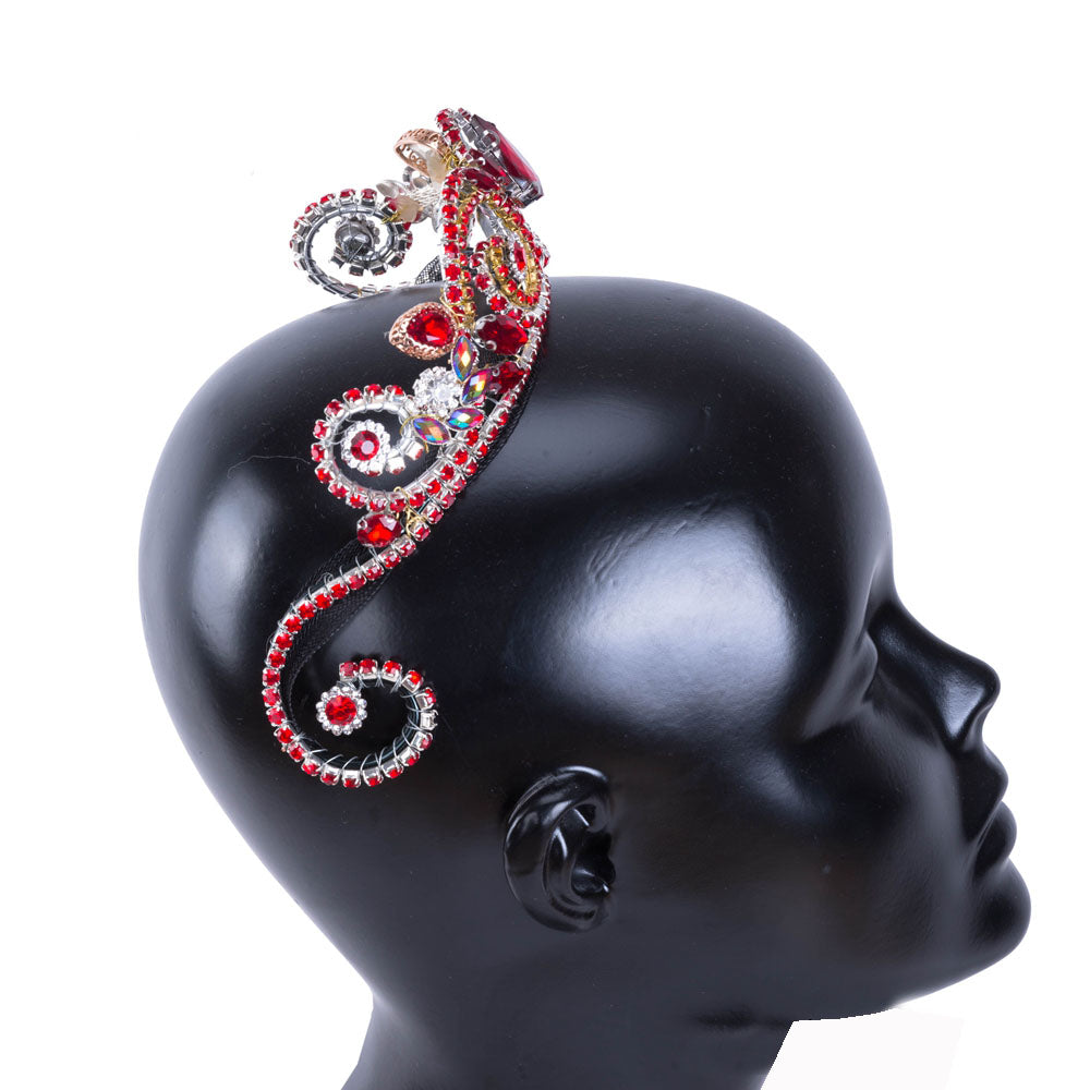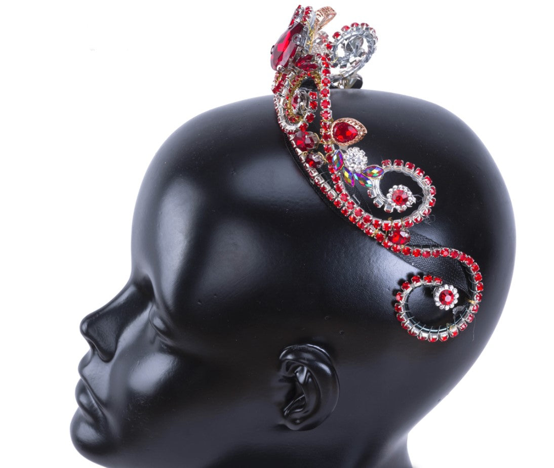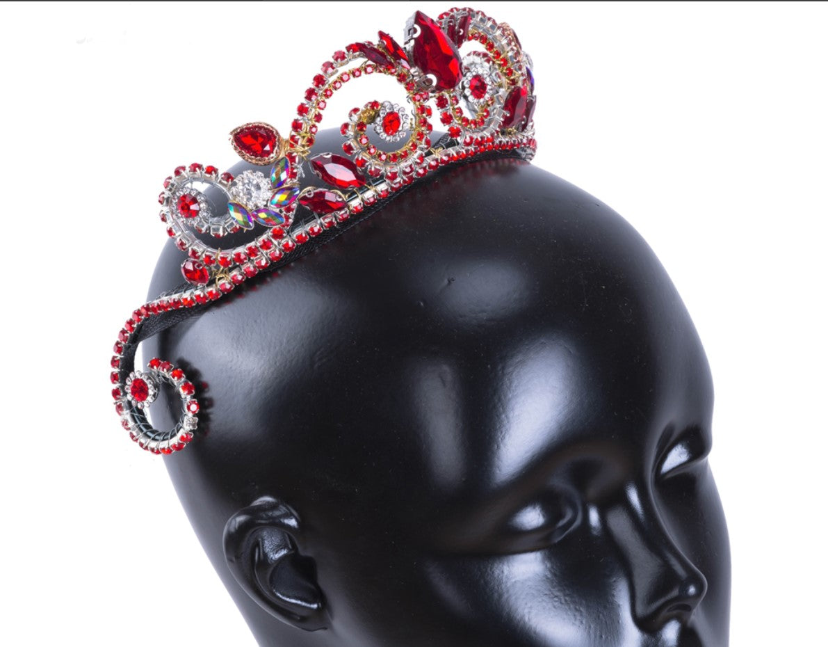 This beautiful professional tiara, entirely hand-made with white and red rhinestones and red crystals, is perfect for any ballet variation and will highlight your stage costume. The frame is red. It decorates the whole head and is extremely shiny under the lights. Suitable for the role of the Finger Fairy in the ballet "The Sleeping Beauty".