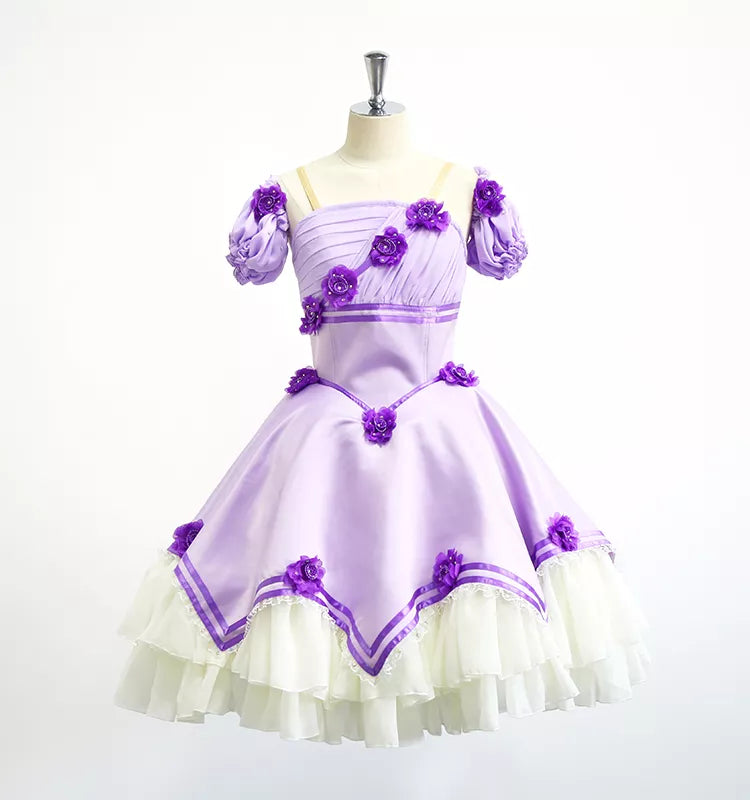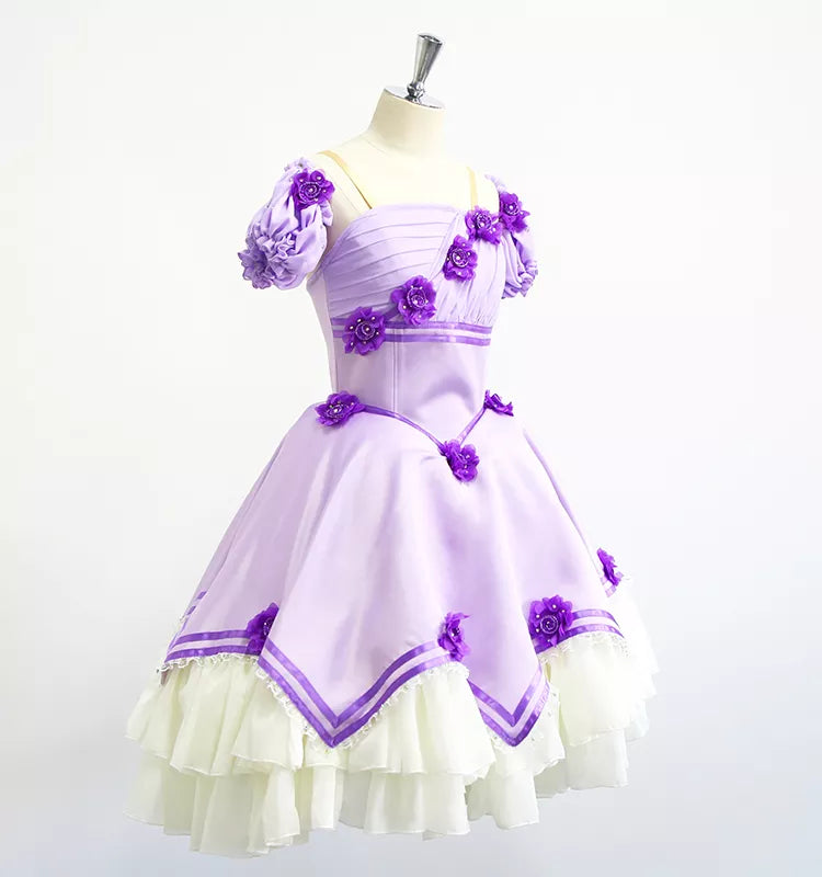 Our newest party dress for Clara or any other party girl, in Nutcracker Act I. This lovely, lilac satin dress features rich decoration with purple satin flowers, and a white tulle underskirt. The puffy short sleeves complete the look of this charming dress.