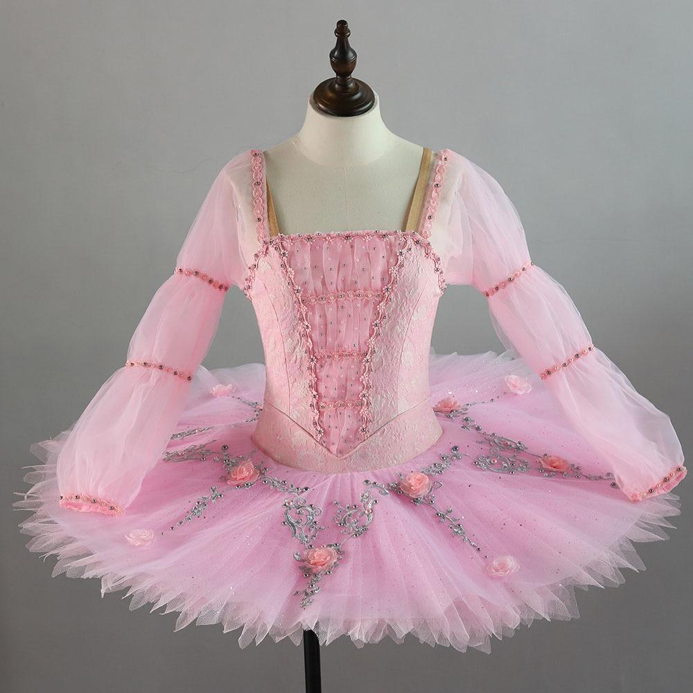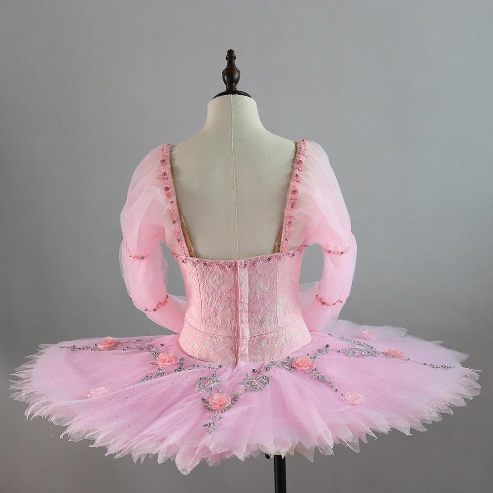 The long sleeves are made of high quality pink organza, and decorated by pink shiny trims.