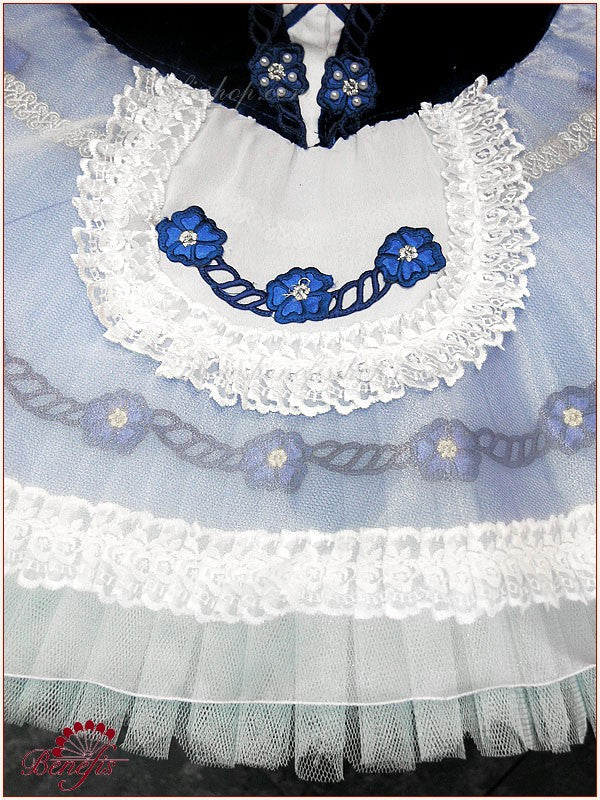 This ballet costume suits perfectly for the “Coppelia” ballet and can be used as a concert costume too.