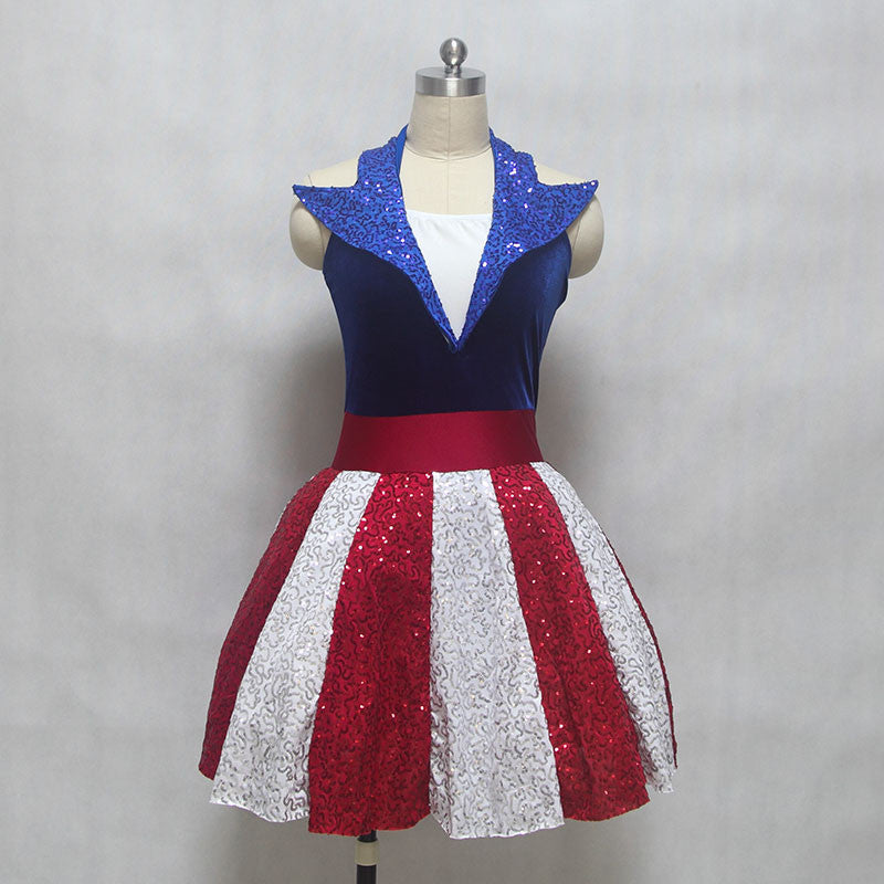 A semi-professional stage dress featuring the lovely colors of our USA flag!