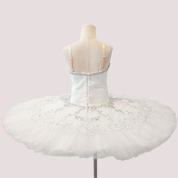 A stunning white pancake tutu to be used for the role of the Candide Fairy in the ballet The Sleeping Beauty, Princess Aurora, as well as for many other classical solos.