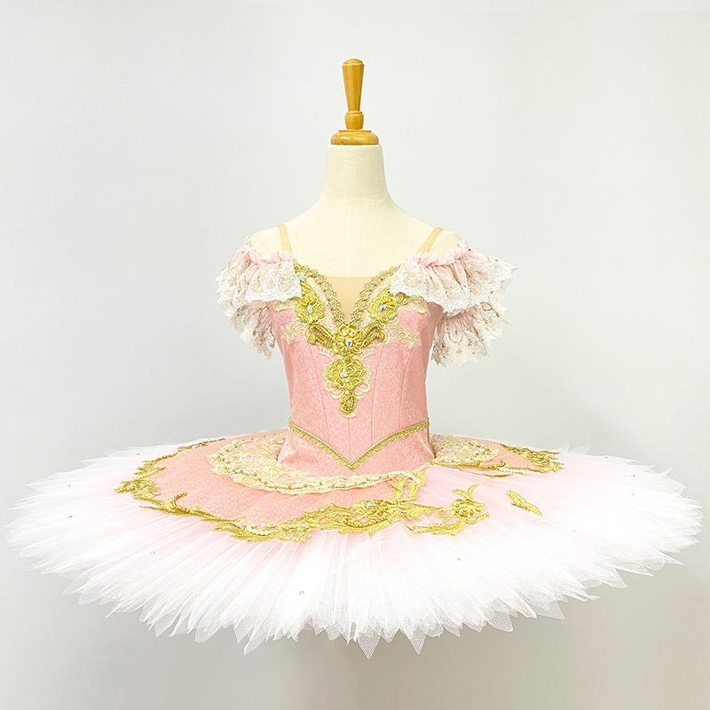 The white pancake skirt is hooped, and has 10 layers of high quality graded net. There is a pink tutu skirt made of glittery tulle, lace and golden appliques.
