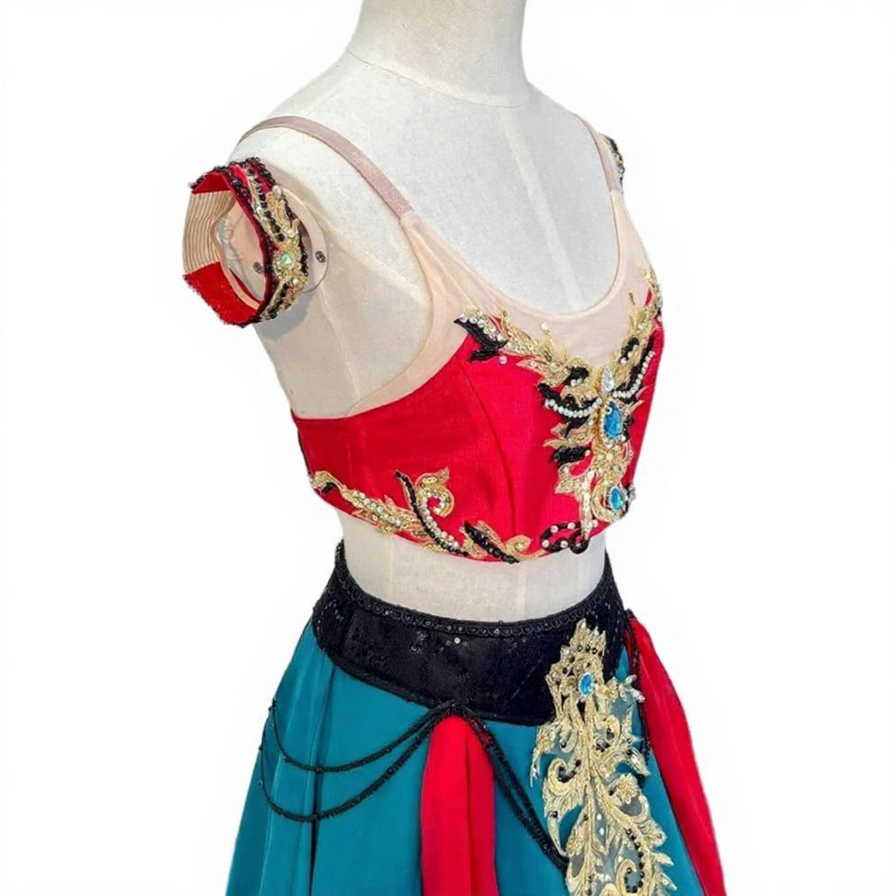 This amazing oriental two piece ballet costume has been designed for ballets like Le Corsaire (Medora, Gulnare, Slaves), La Bayadere, Sheherazade, etc.