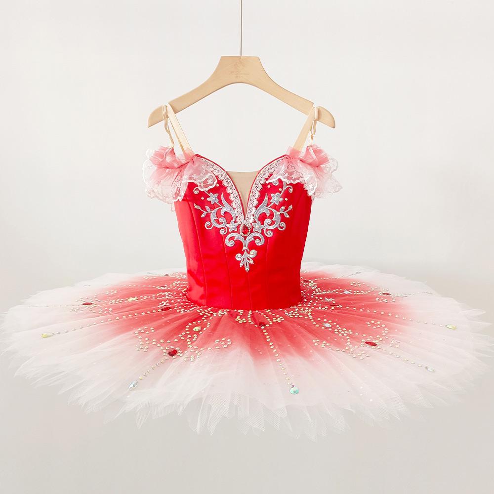 The professional 10 layers tutu skirt features the ombre' technique, with red tulle fading to white.