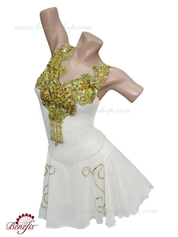 The costume consists of a bodice made of dense semi-stretched fabric with attached panties and a two-layered attached skirt made of chiffon, which begins on hips.