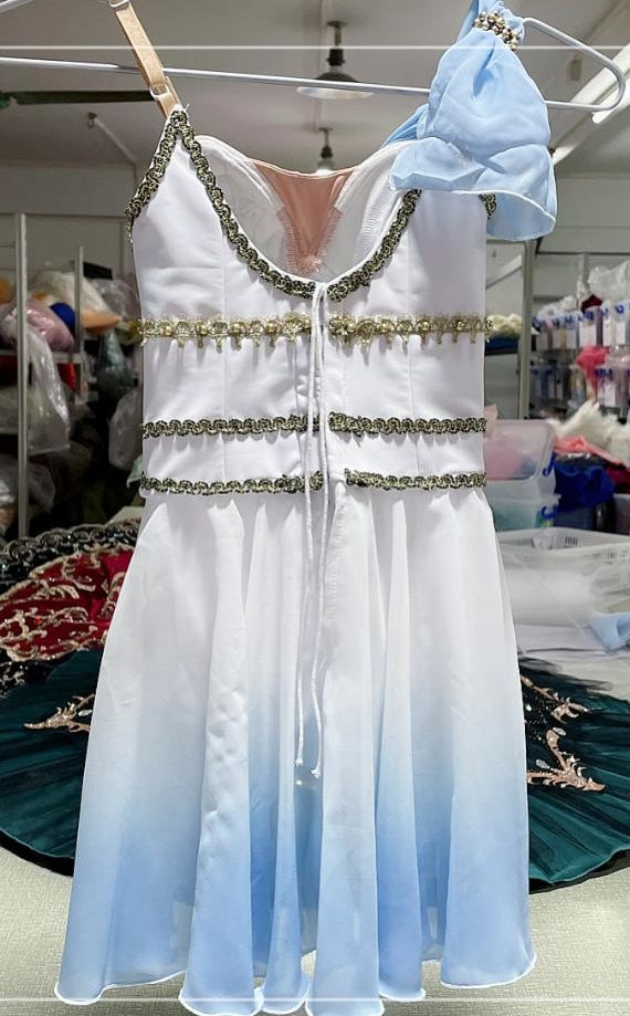 New creation 2022 for the ballet "Talisman". This ombre' dyed short professional dress can also be used for the role of "Cupid", in Don Quixote.