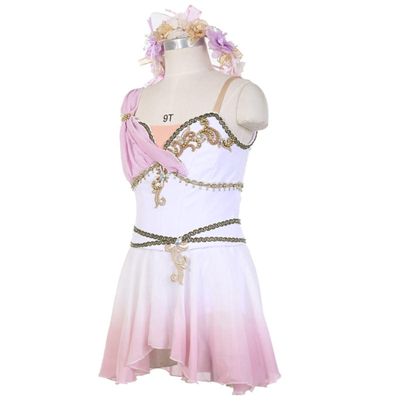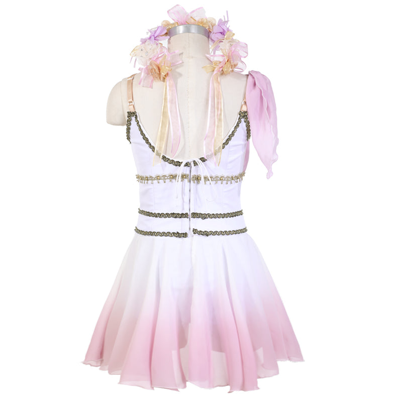 This white, ombre' hand dyed stage costume features gradient shades of pink or peach, according to your choice.