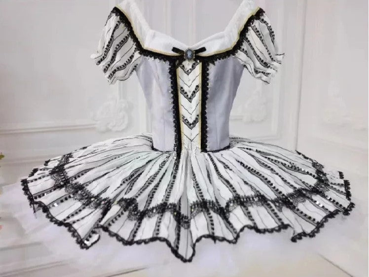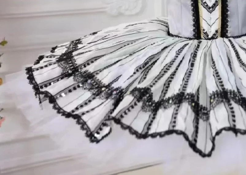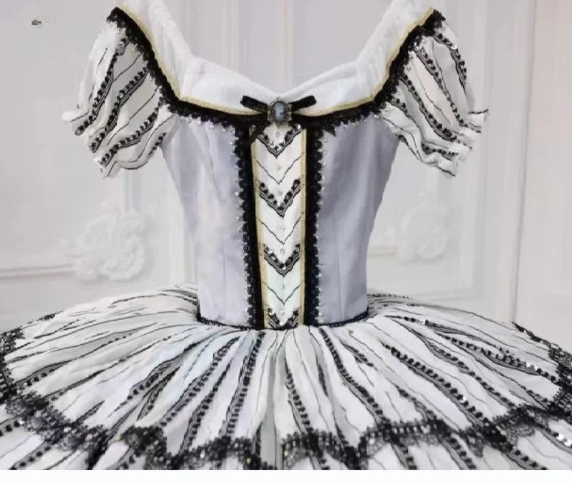 La jupe tutu crêpe professionnelle à dix couches est entièrement blanche et comporte 10 couches de tulle gradué et collé à la main.