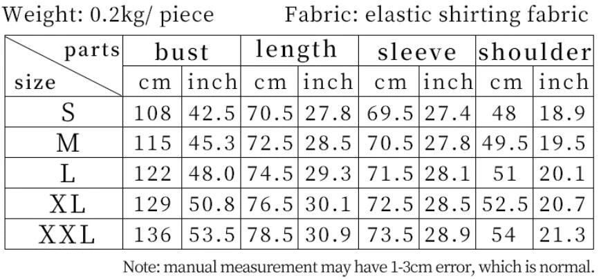 La chemise est disponible dans les tailles Small, Medium, Large, XL, XXL