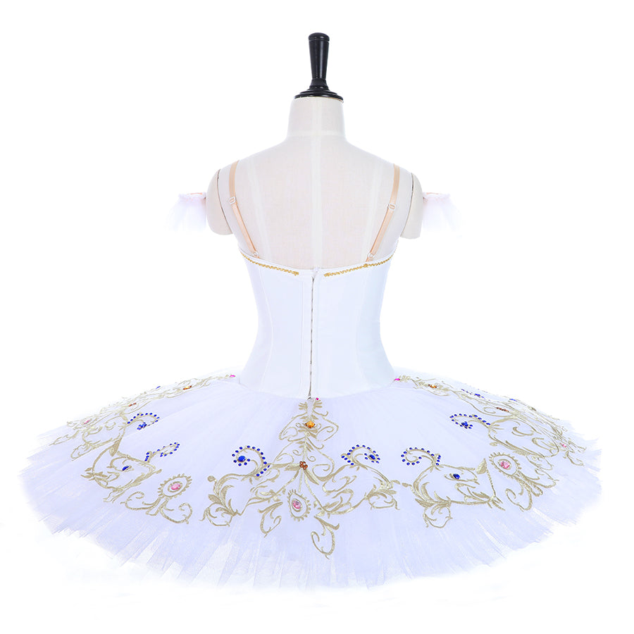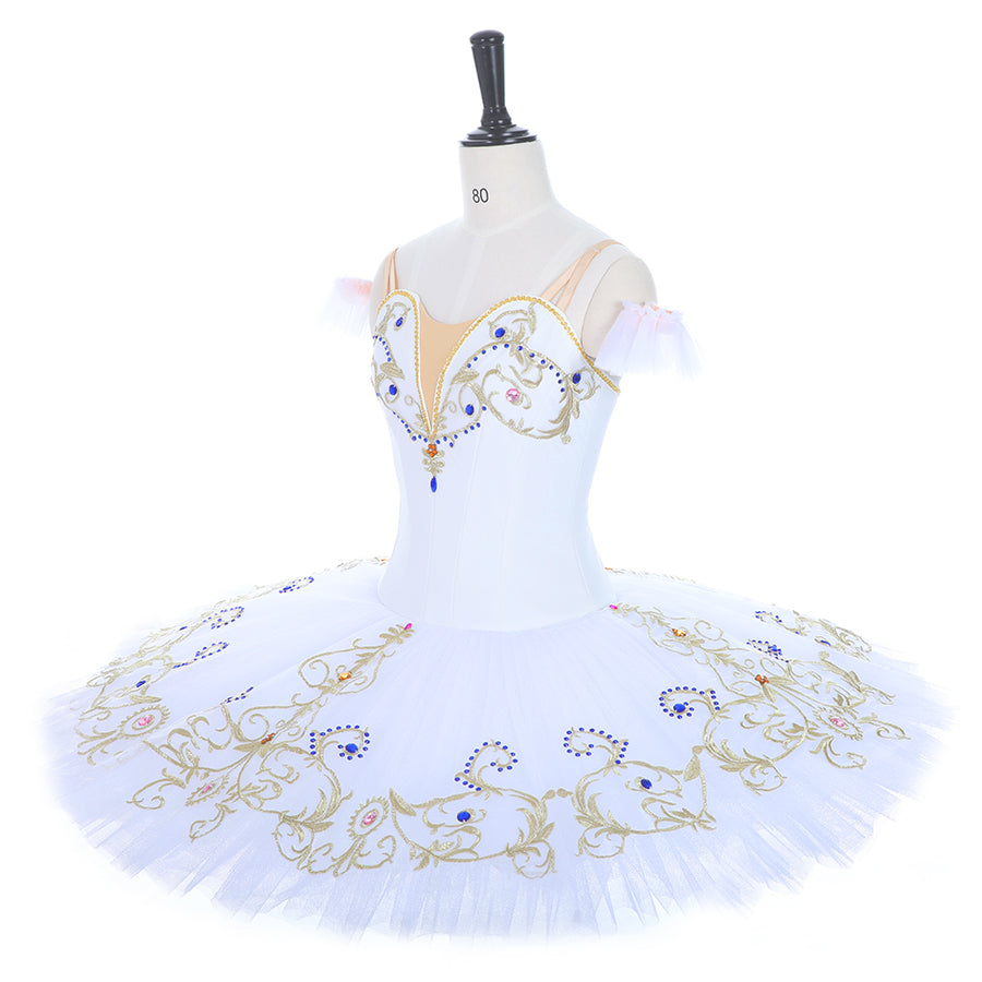 Ce superbe costume blanc et or convient à de nombreuses variations classiques : La Belle au bois dormant, Paquita, Don Quichotte, Coppelia, Casse-Noisette et bien d'autres.