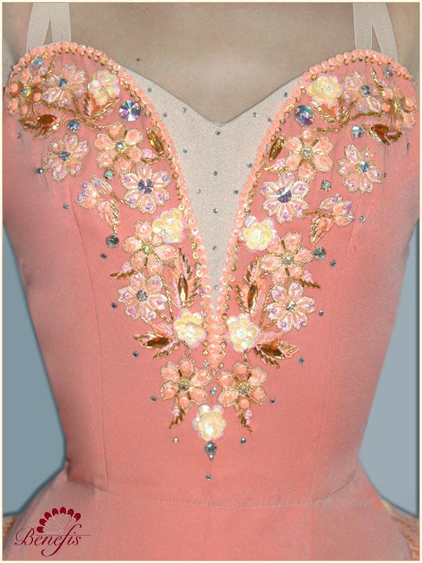 Il s'agit d'un costume de scène professionnel, réalisé sur la base du tutu de base professionnel #T 0002 (voir section « Tutus de base »).