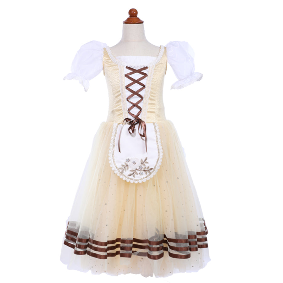 Ce charmant tutu romantique paysan est créé pour des rôles comme « Coppelia », « La Fille Mal Gardee » et « Giselle ».