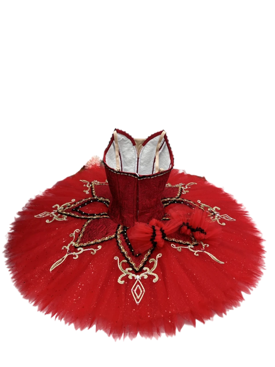 Ce costume de scène professionnel peut être porté pour le rôle de la Fée de la Vigne Dorée (Violente) dans le ballet "La Belle au Bois Dormant". Il peut également être utilisé pour toute autre variation classique, pour le rôle de Kitri ou Paquita et bien d'autres.