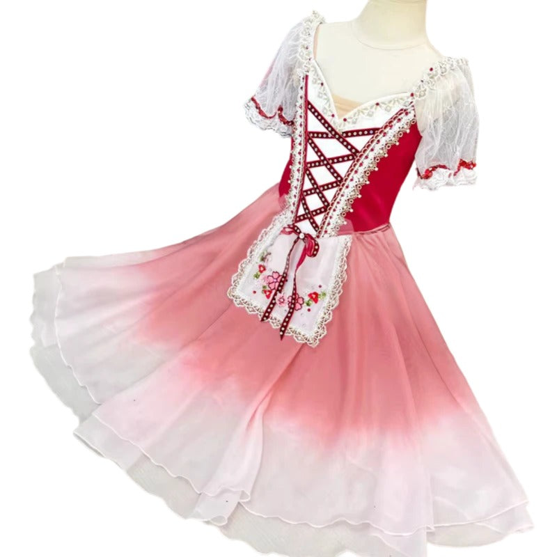 This tutu features a lovely shade of ruby red and gradient tones of red fading to white.
