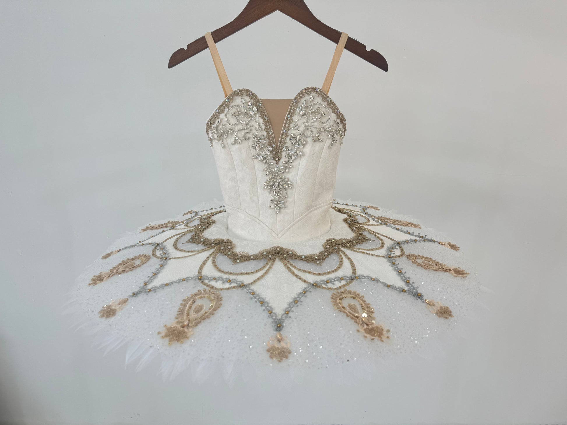 Ce superbe tutu professionnel vient d'être créé pour le rôle de la princesse Aurore dans l'acte III de "La Belle au bois dormant". Ce costume peut également être utilisé pour le Grand Pas de nombreux autres ballets : Paquita, Don Quichotte, Casse-Noisette, Raymonda etc.