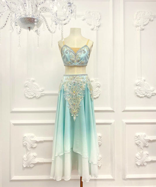 Nos tutus sont très légers et spécialement conçus pour le duo, permettant une liberté de mouvement, notamment lors des levées. Le corsage est créé avec un double jeu de crochets et d'œillets pour un ajustement parfait, et un cordon au niveau de la poitrine pour un meilleur ajustement. Les pierres utilisées pour les embellissements et les décorations sont des cristaux Swarovski, pour obtenir le maximum d'éclat sur scène.