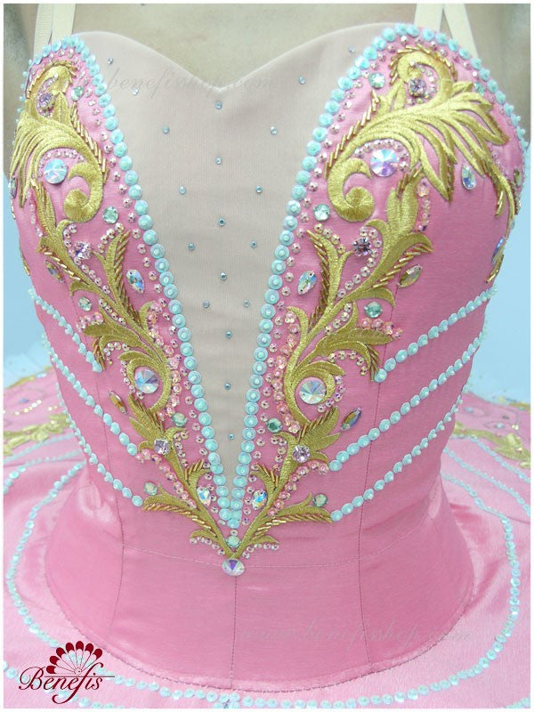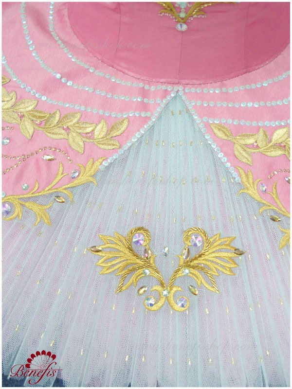 Il s'agit d'un costume de scène professionnel, réalisé sur la base du tutu de base professionnel # T 0001B (voir section « Tutus de base »).