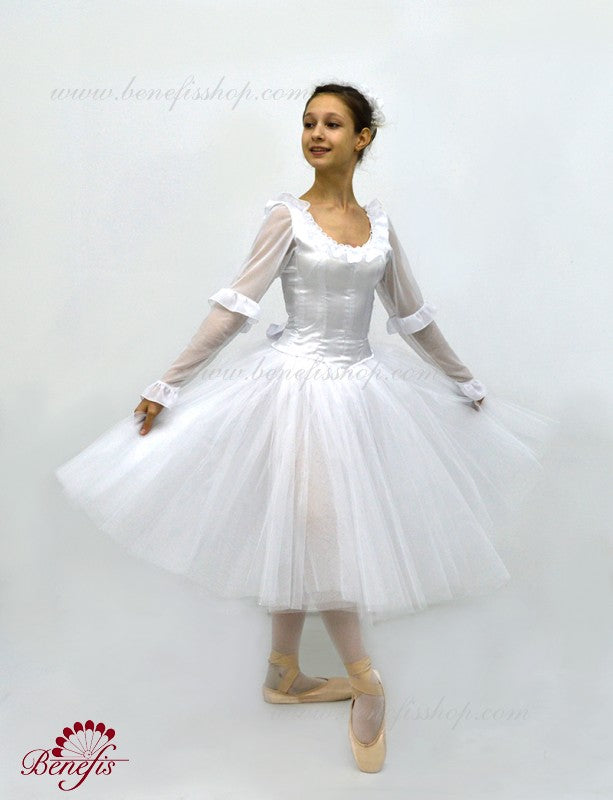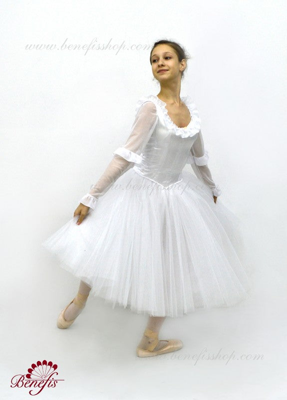 The tutu skirt is made according the basics of a Romantic tutu, and features 5 layers of very soft net, and a satin big bow that ties in the back.