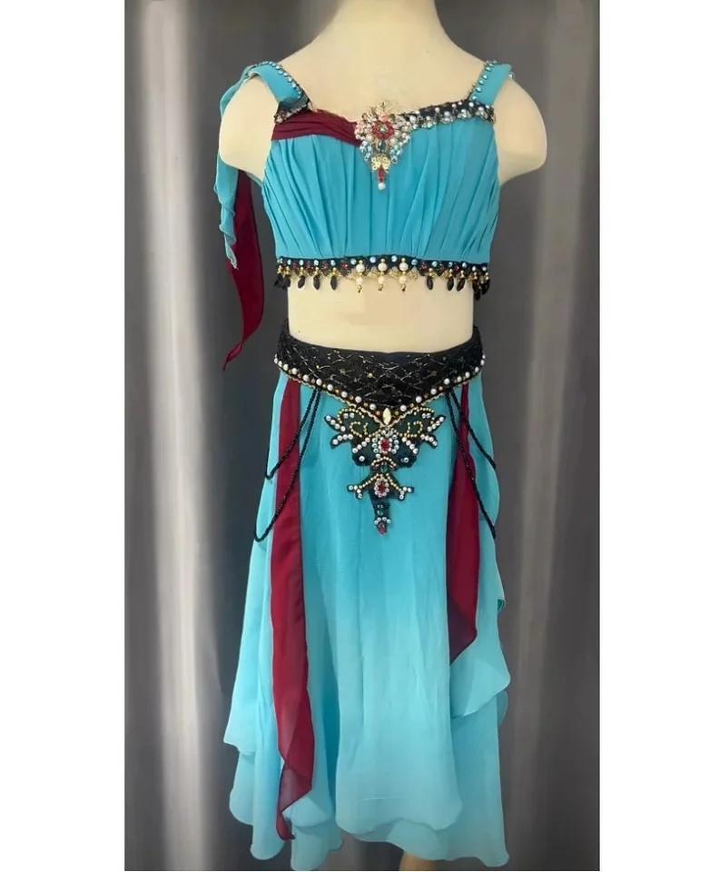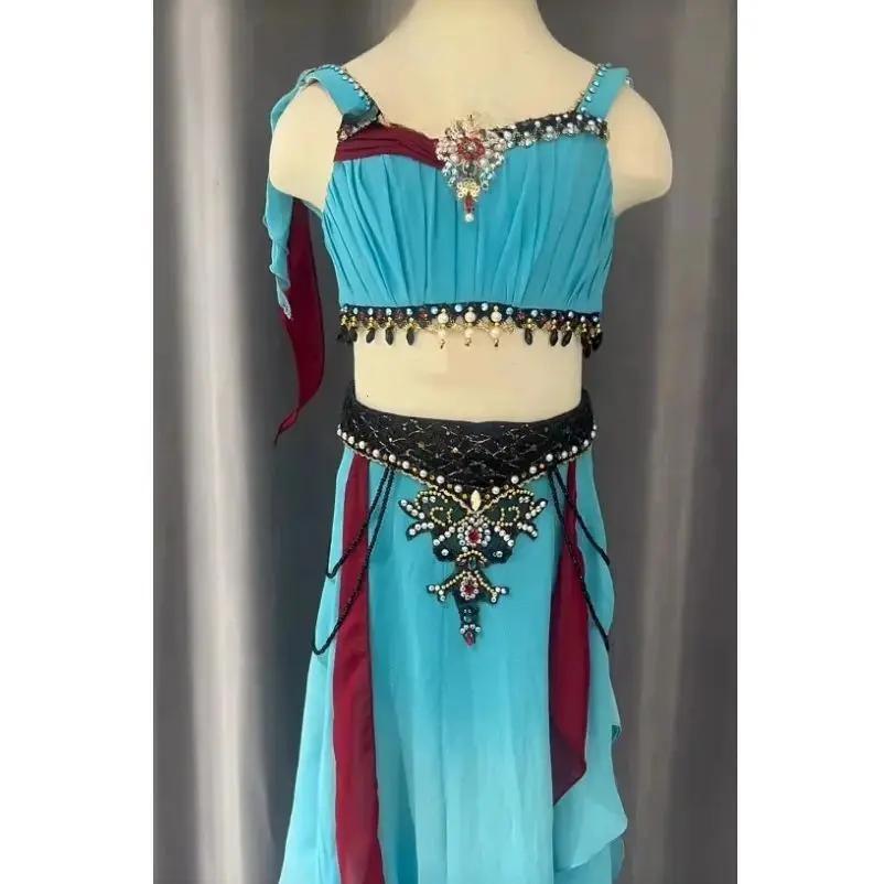 This professional stage costume is suitable for the role of "Medora" in the ballet "Le Corsaire" Act I. The style of this two piece costume is inspired by the costume used at the Bolshoi Theater in Moscow.