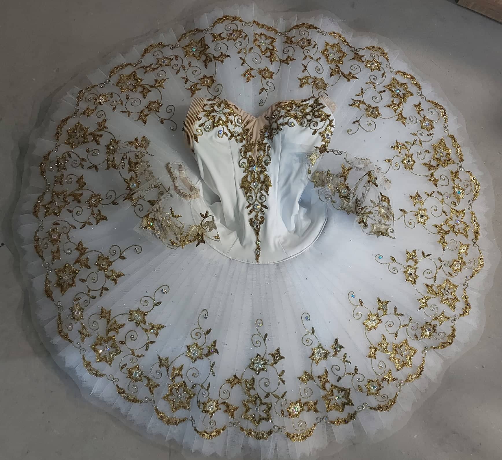 A professional Russian tutu in white and gold, suitable for any princess role.